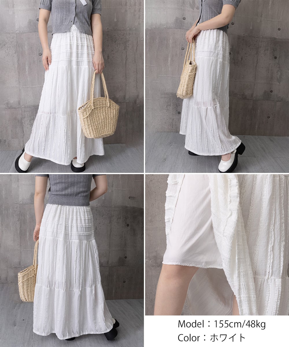 レースロングスカート ティアードスカート