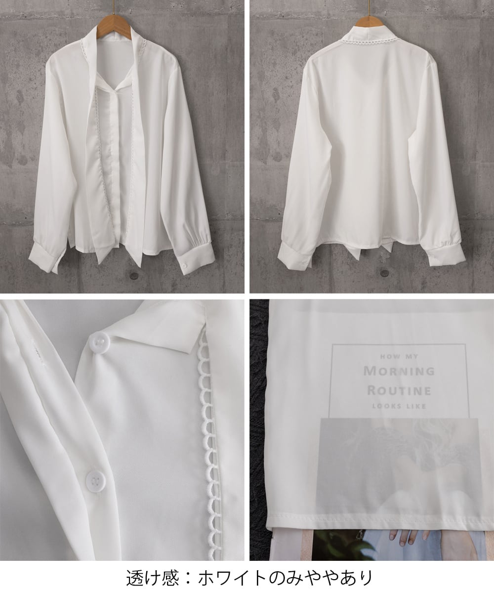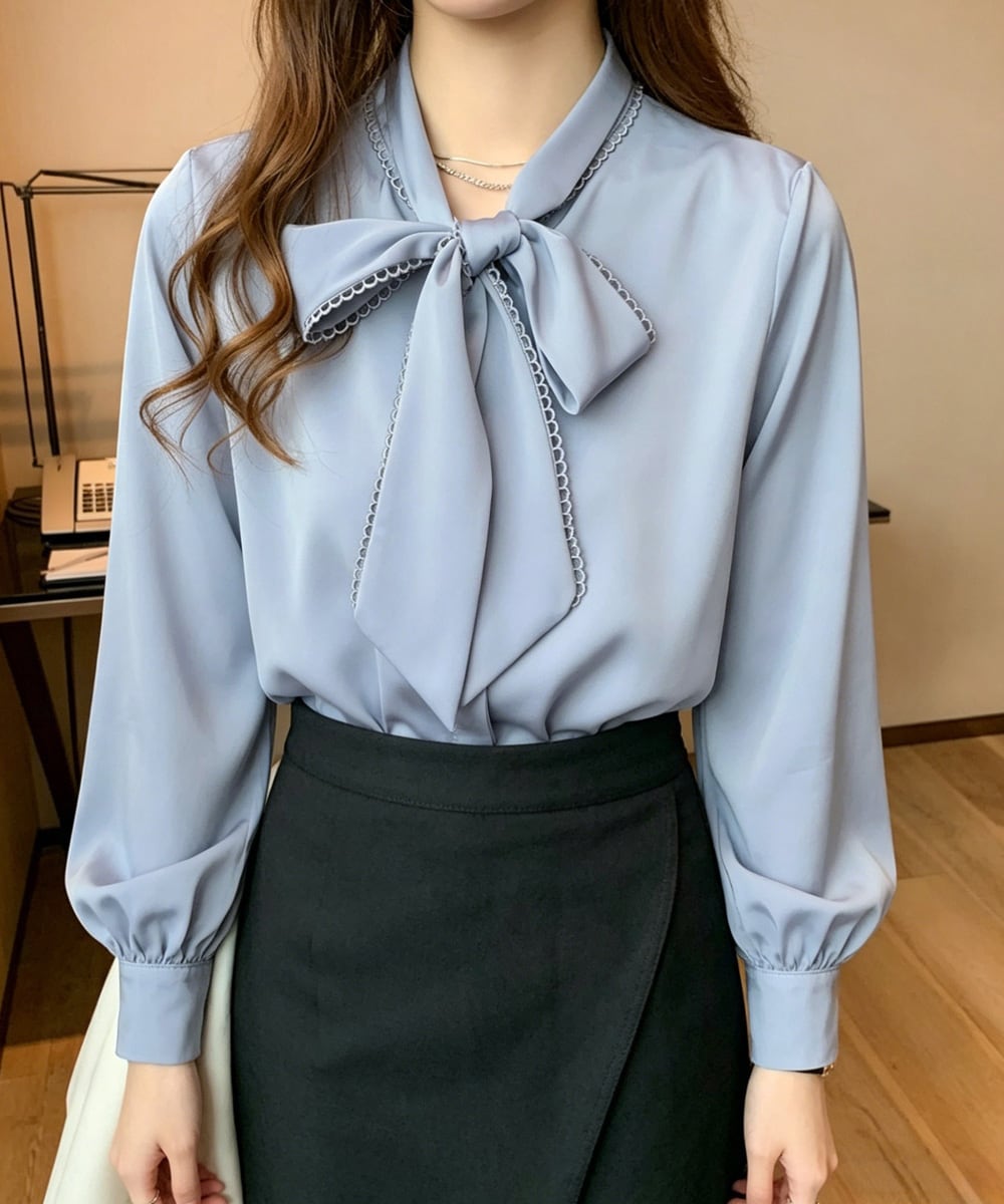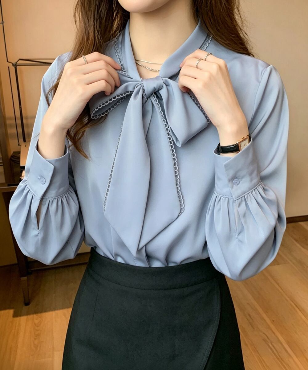 シャツブラウス春夏 タイネックトップス 薄手ブラウス韓国風