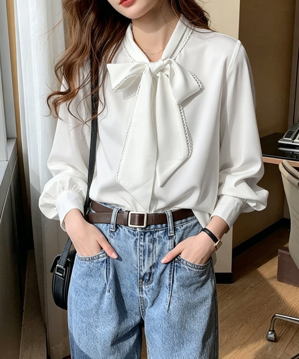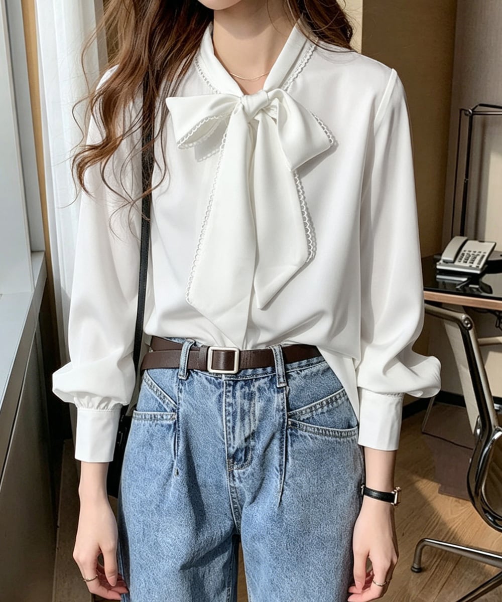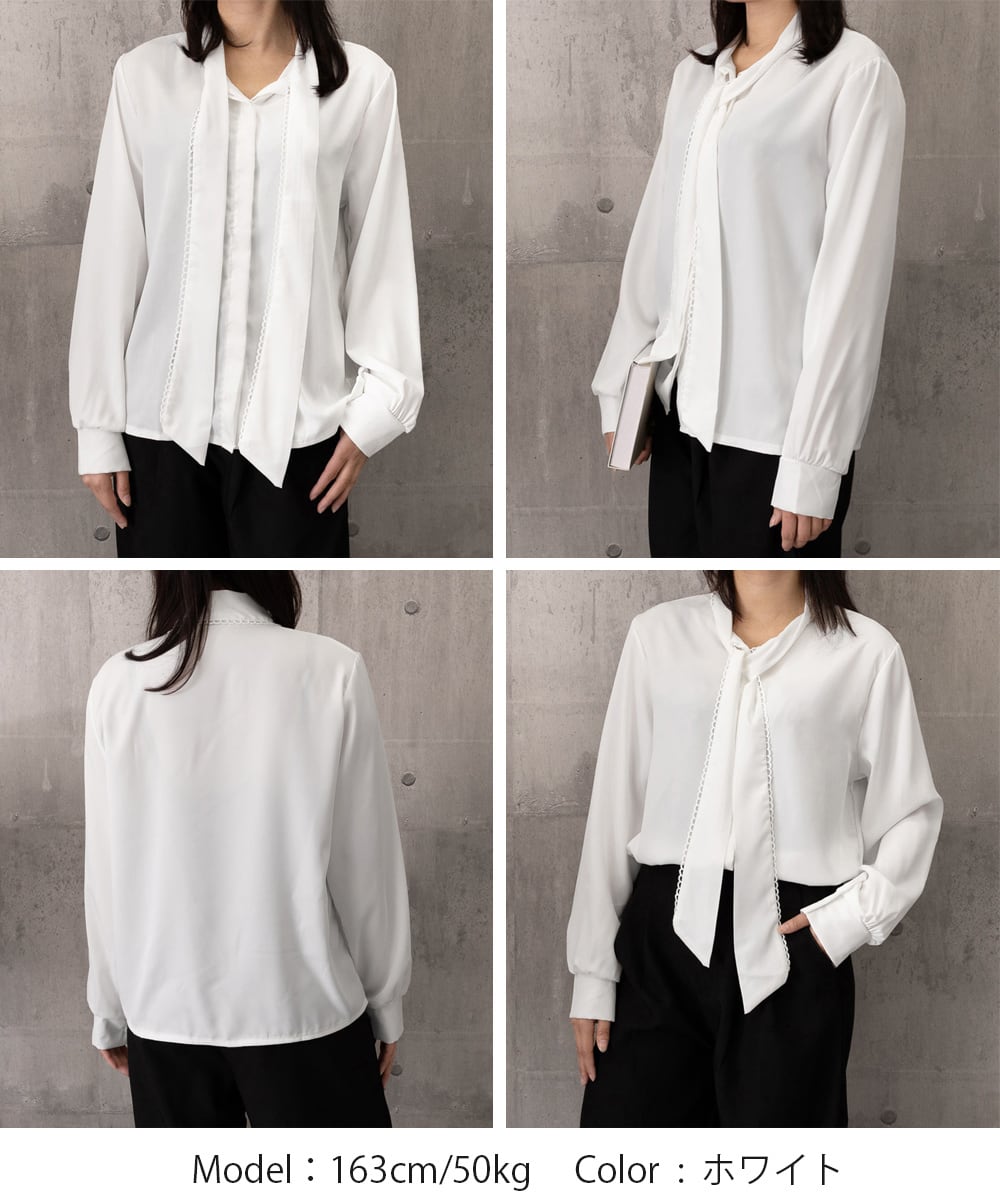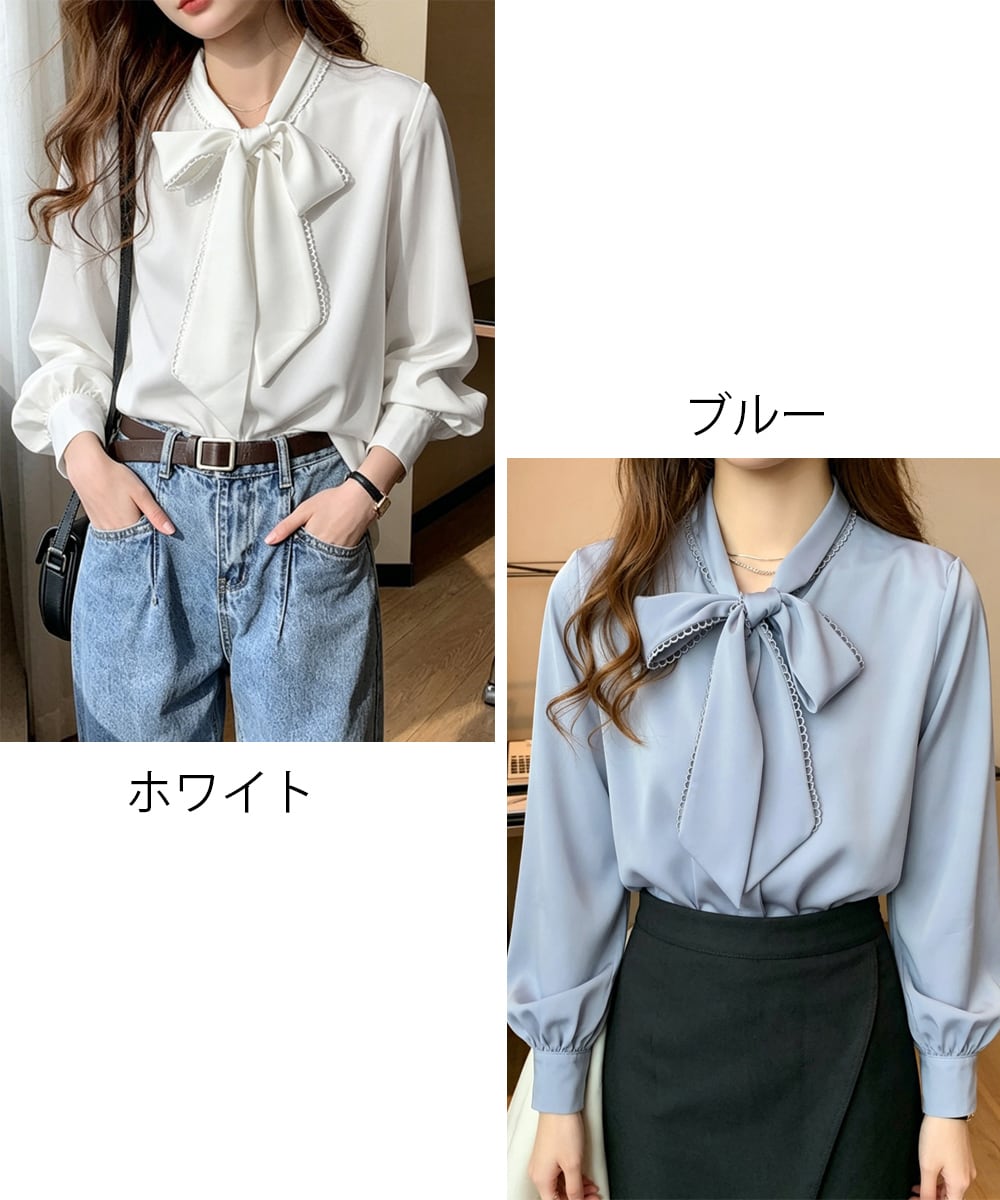 大人可愛い着こなしにぴったりなビッグリボンブラウス。