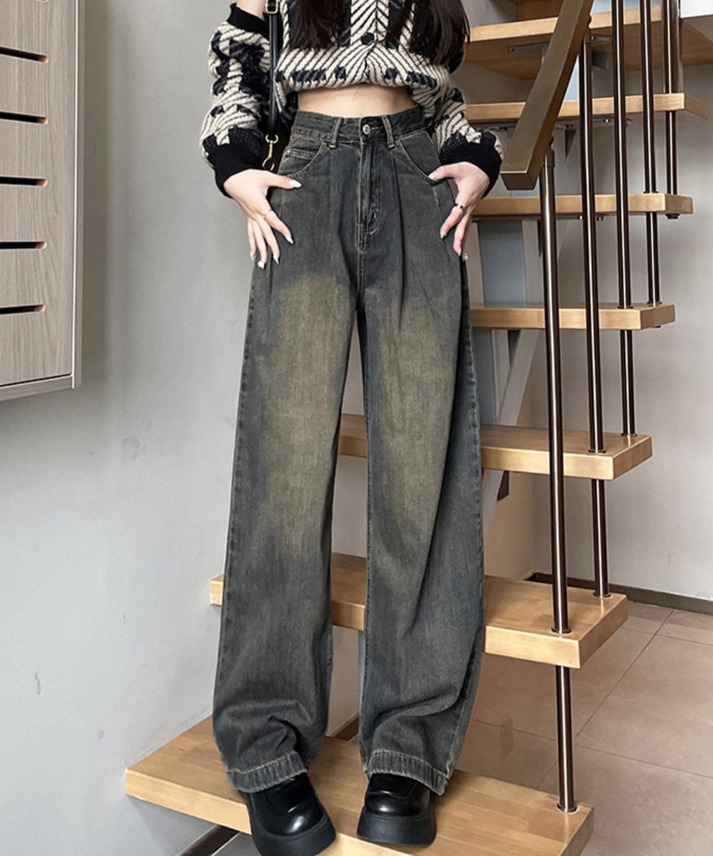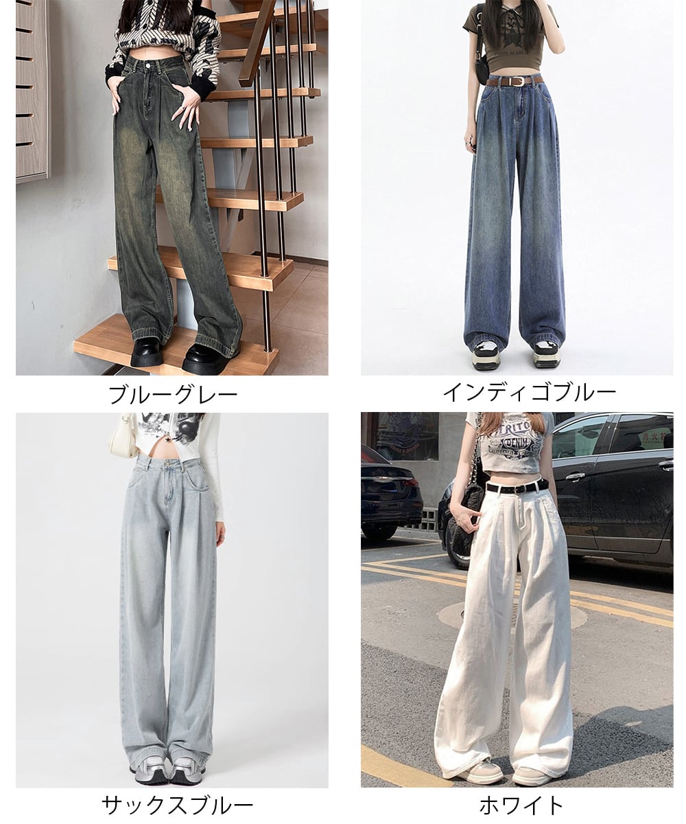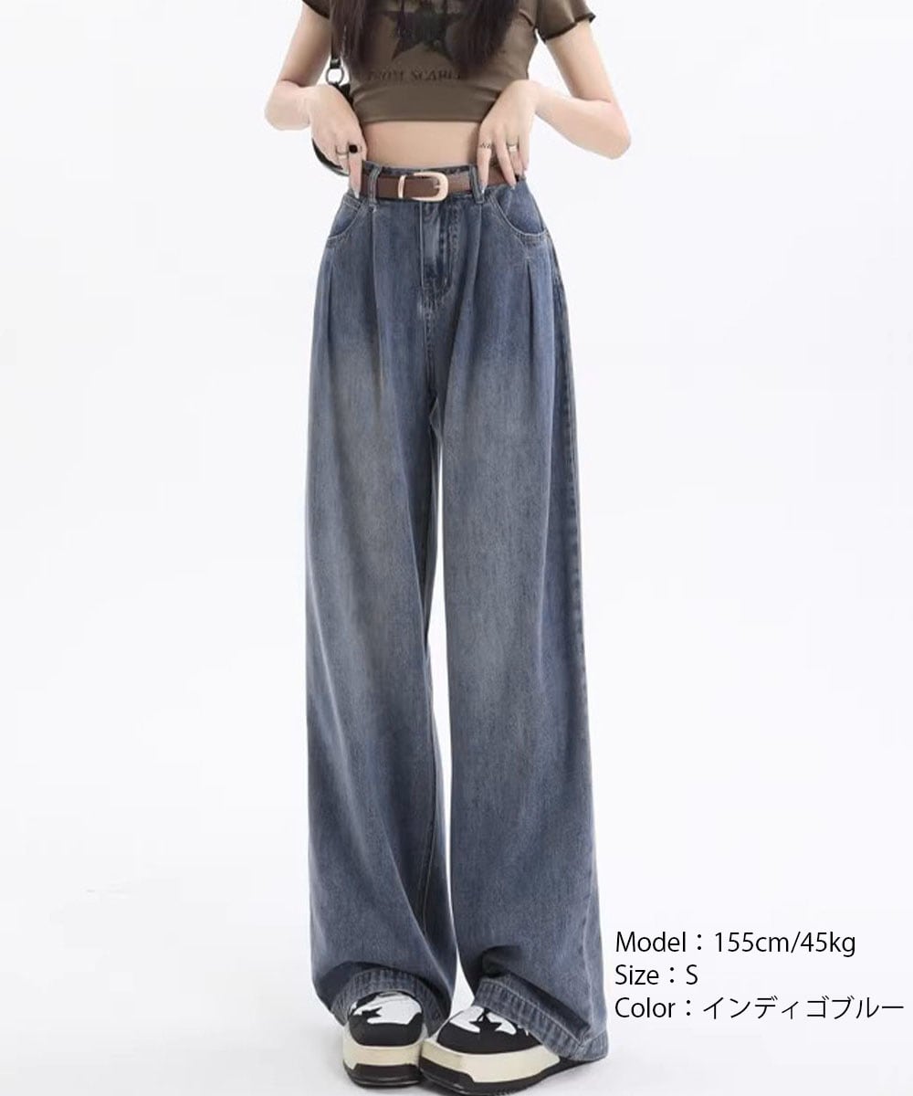ハイウエスト ワイドストレートデニムレディース ゆったりジーンズ体型カバー ジーパン ストリートデニムロングパンツ 美脚