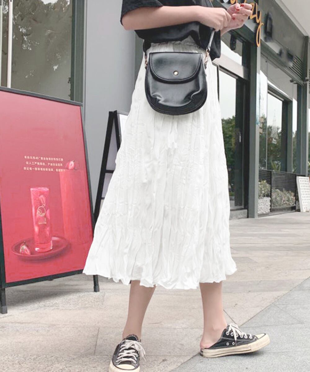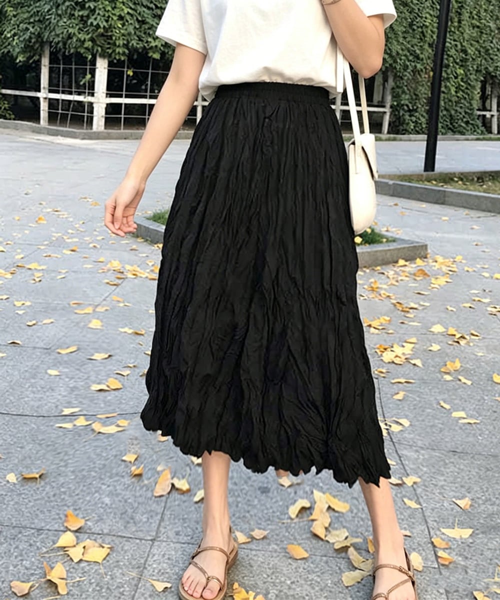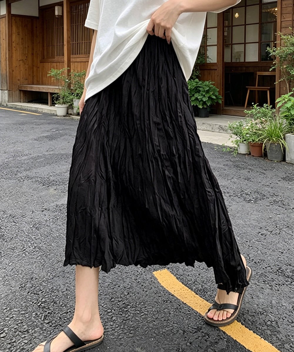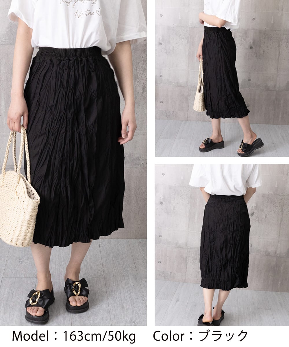 ワッシャースカート ミモレ丈 レディース