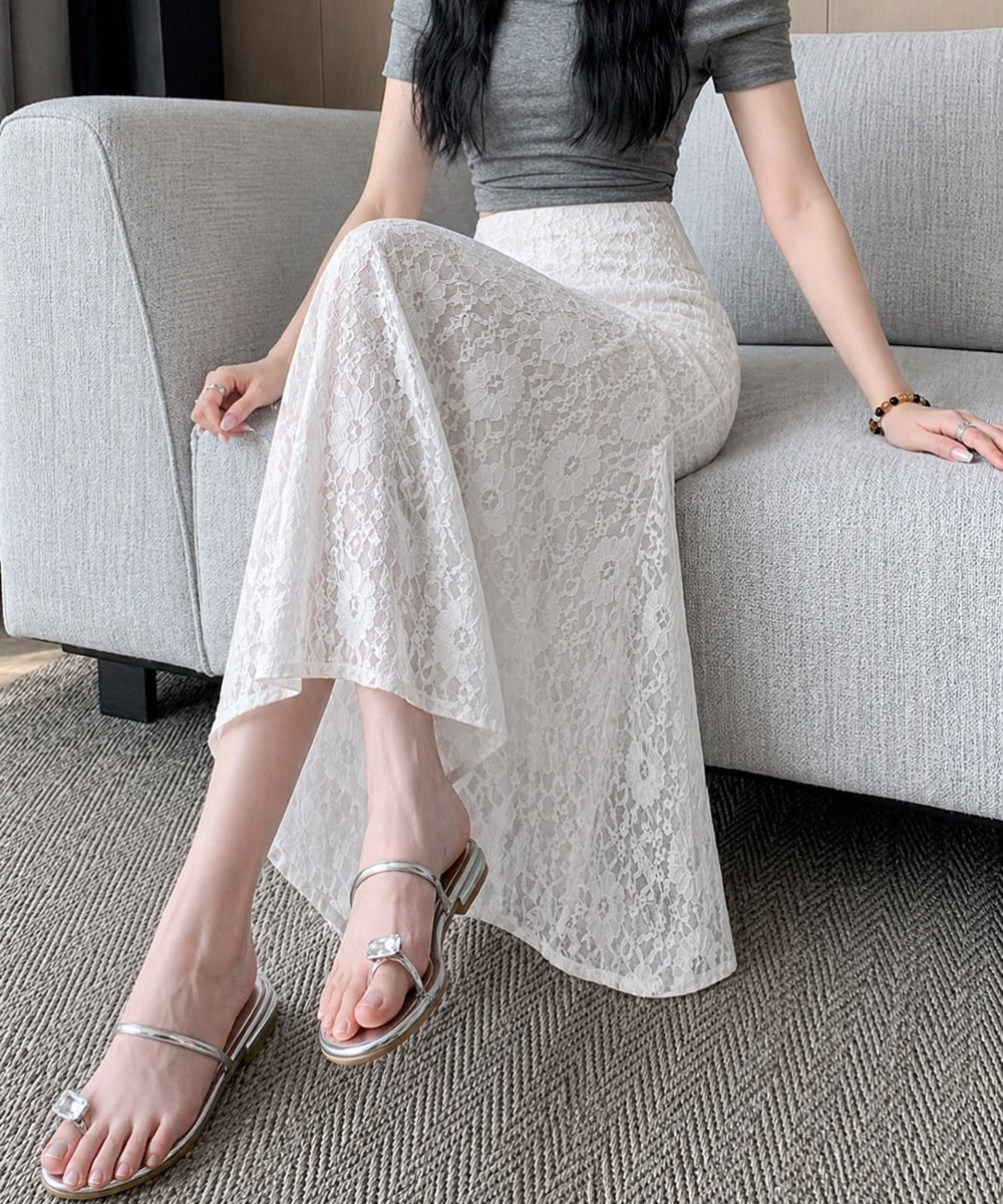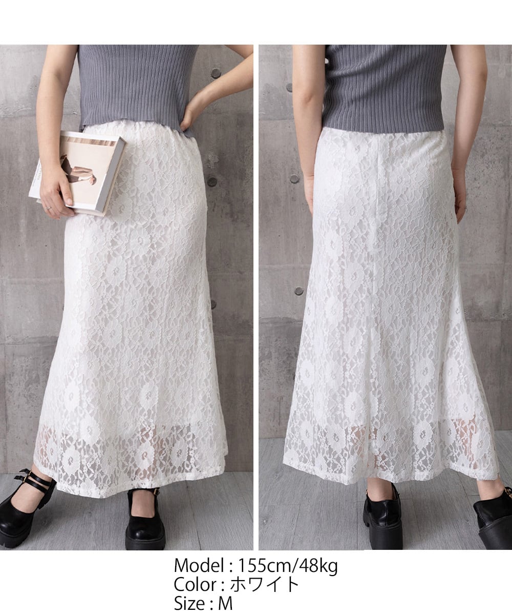 総レース仕立てのマーメイドロングスカート。
