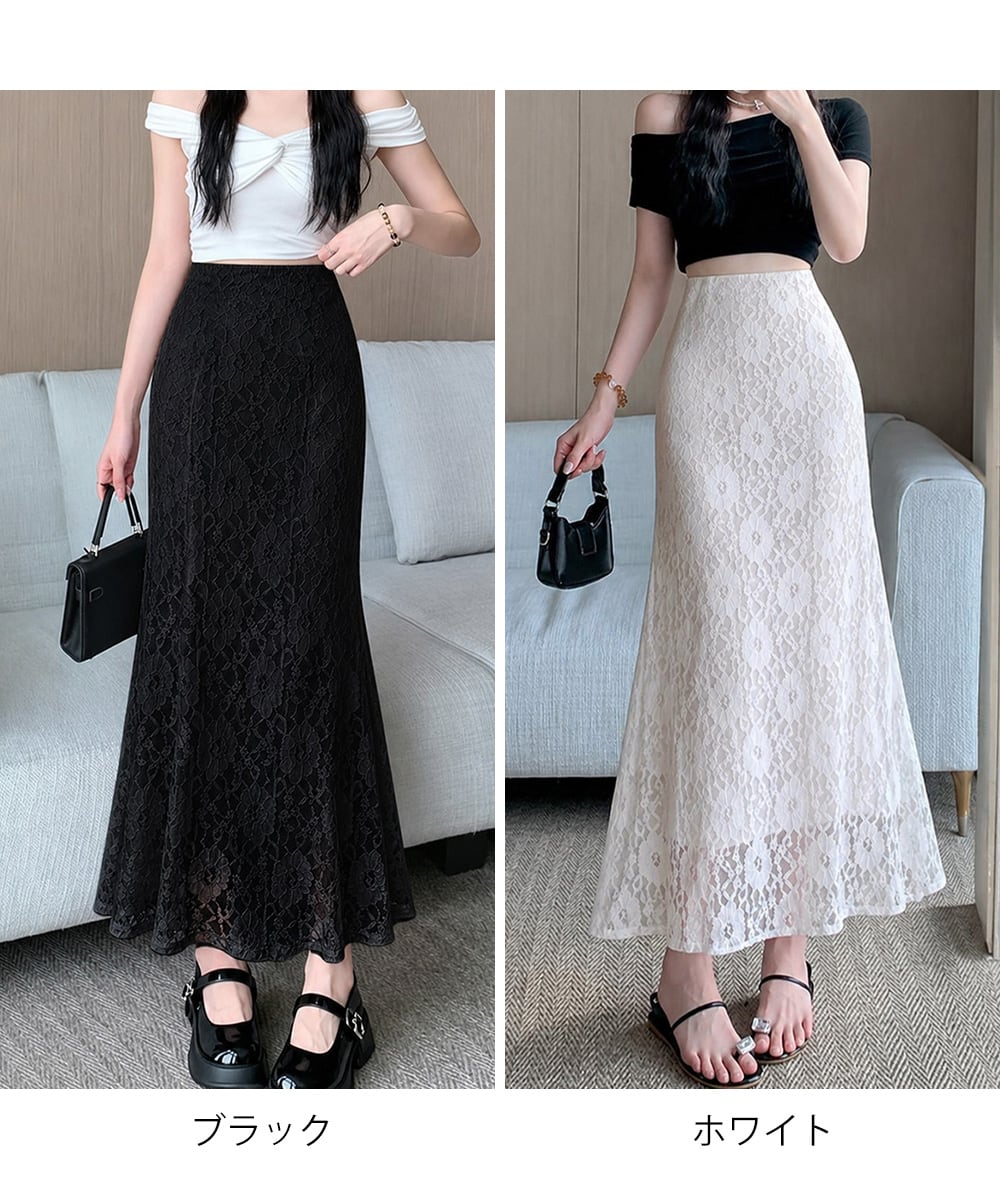 レースマーメイドスカート ハイウエスト