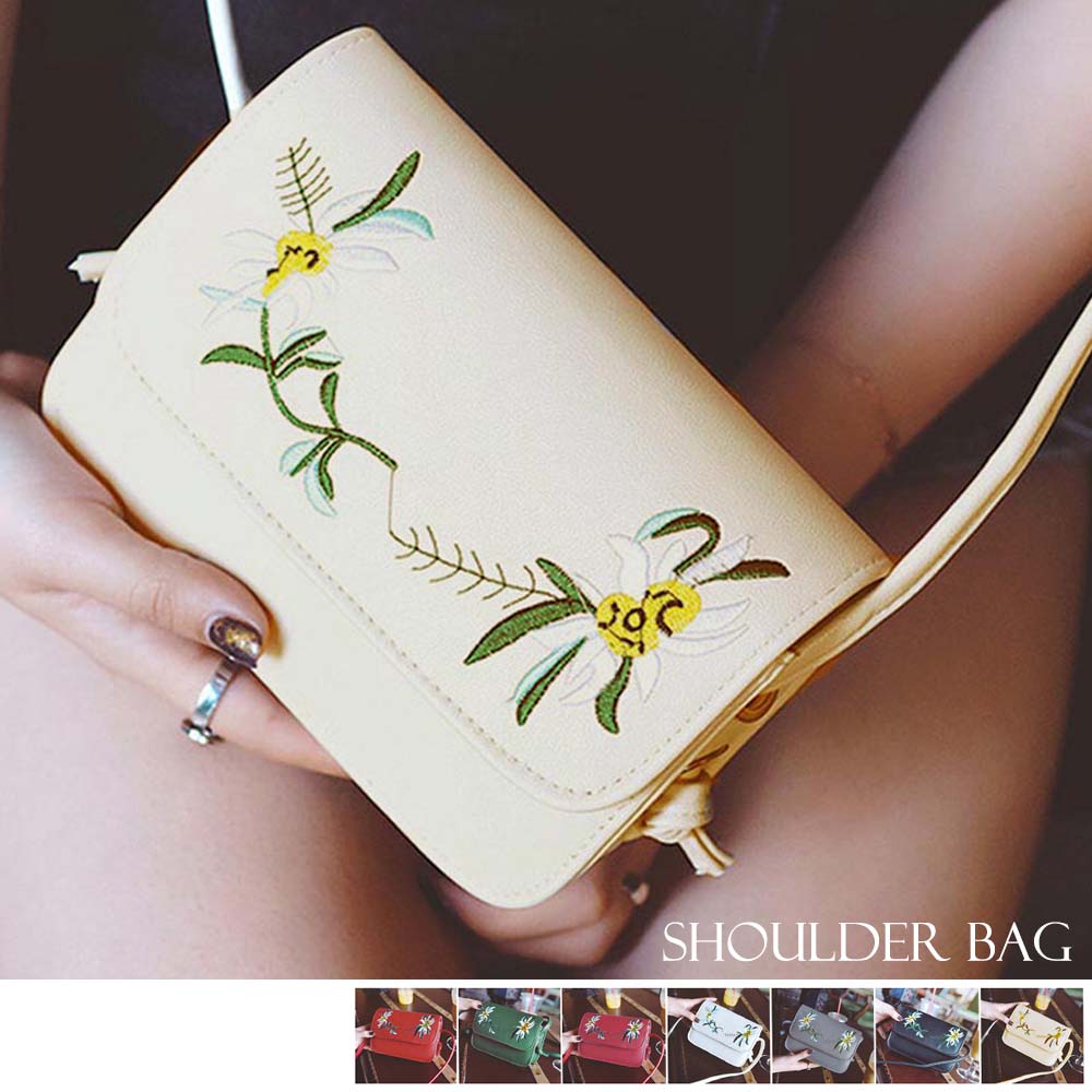 刺繍入り ショルダーバッグ レディース 斜めがけ かわいい ポシェット 鞄