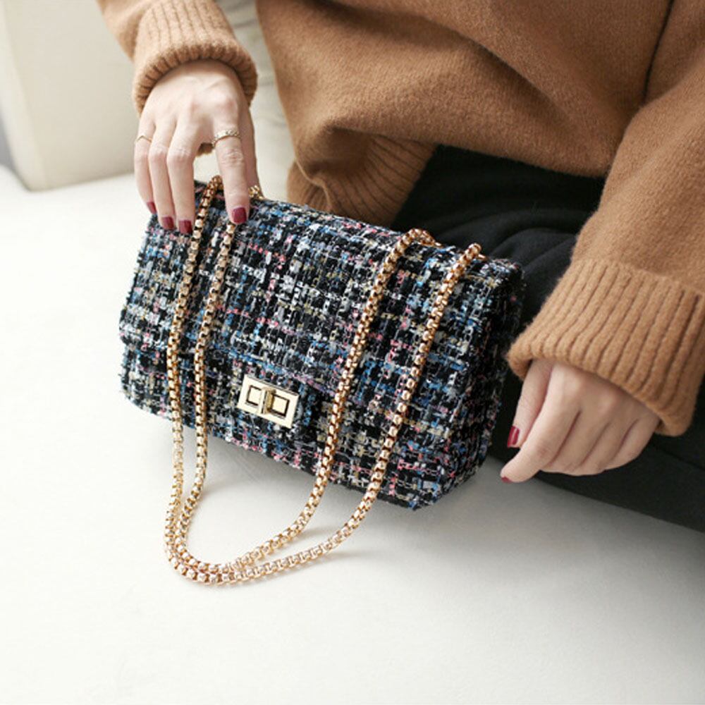 ショルダーバッグ レディース 2way ツイードチェーンバッグ 肩かけ 軽い