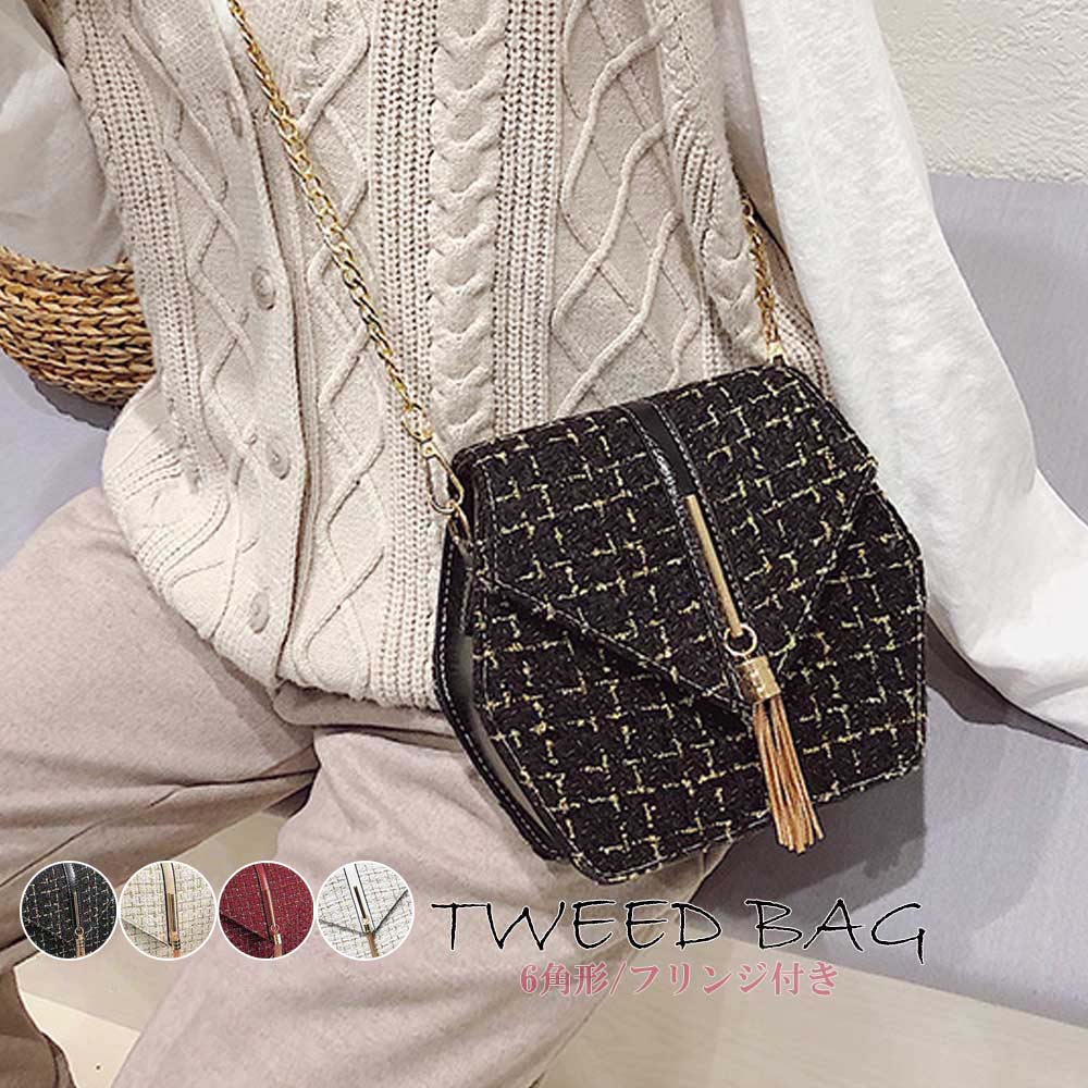 ショルダーバッグ レディース 6角形 斜め掛けバッグ 小さめ フリンジ付き