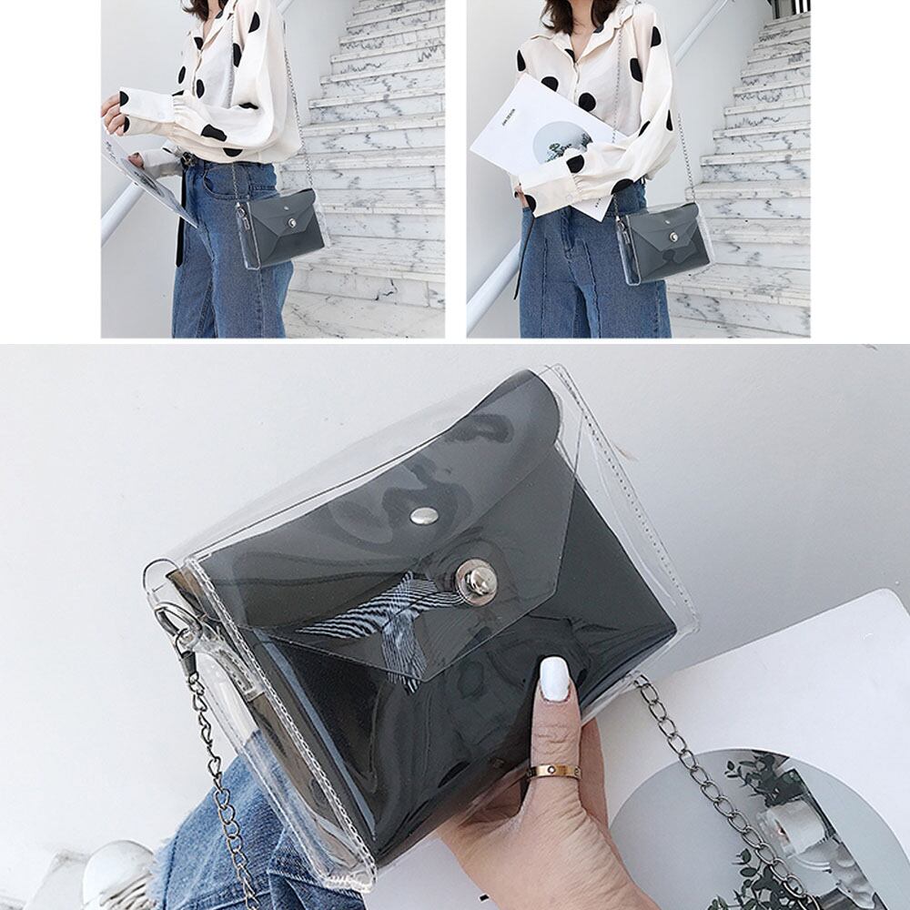 夏らしく涼しげなクリア素材にフェイクレザーポーチ付きのアンサンブルバッグ