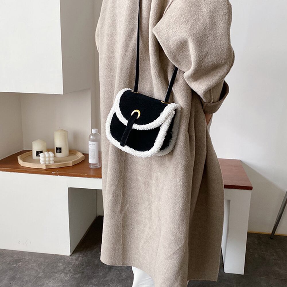 ファーショルダーバッグ レディース レザー ボア付き 小さめバッグ スエード