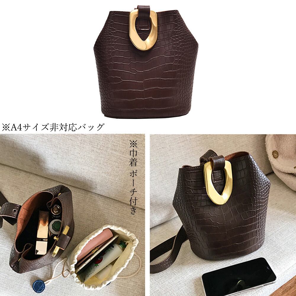 バケットバッグ レディース クロコダイル ワンショルダーバッグ 型押し 巾着