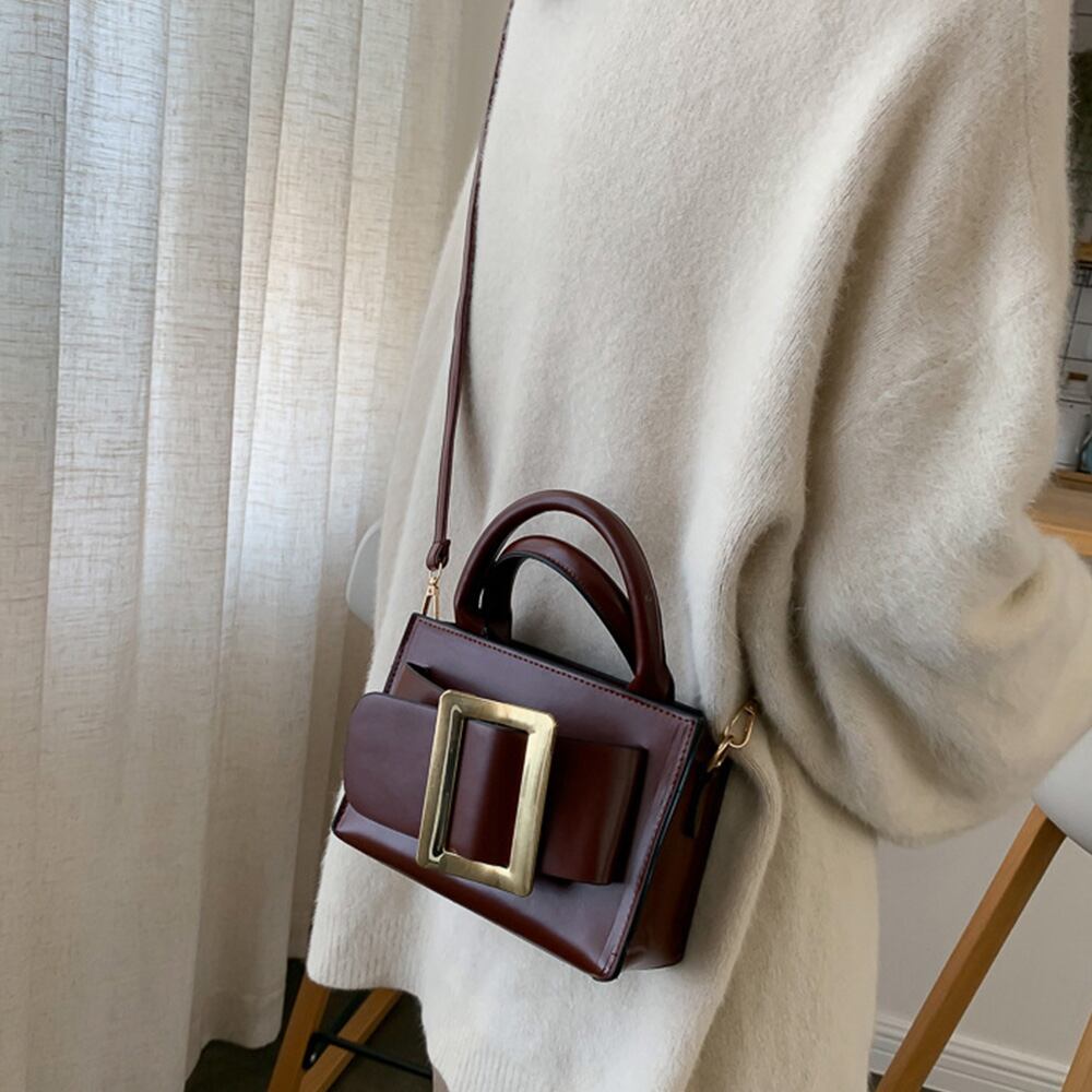 大きな金具飾りがスタイリッシュで目を引くきれいめショルダーバッグ