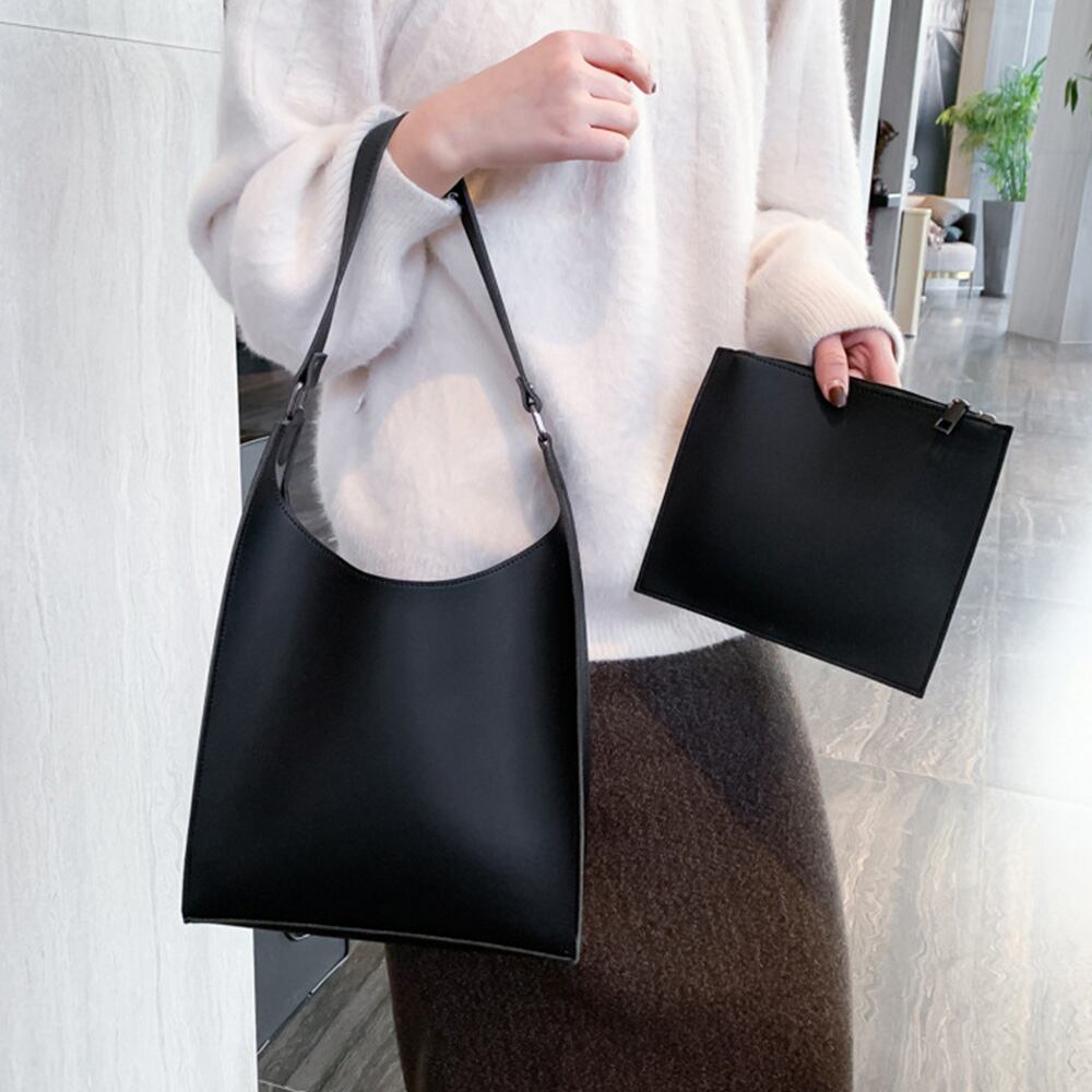 たくさん収納できて通勤にもお出かけにも大活躍間違いなし、さらに同色のポーチ付きでとても便利でお得な2点セット仕様