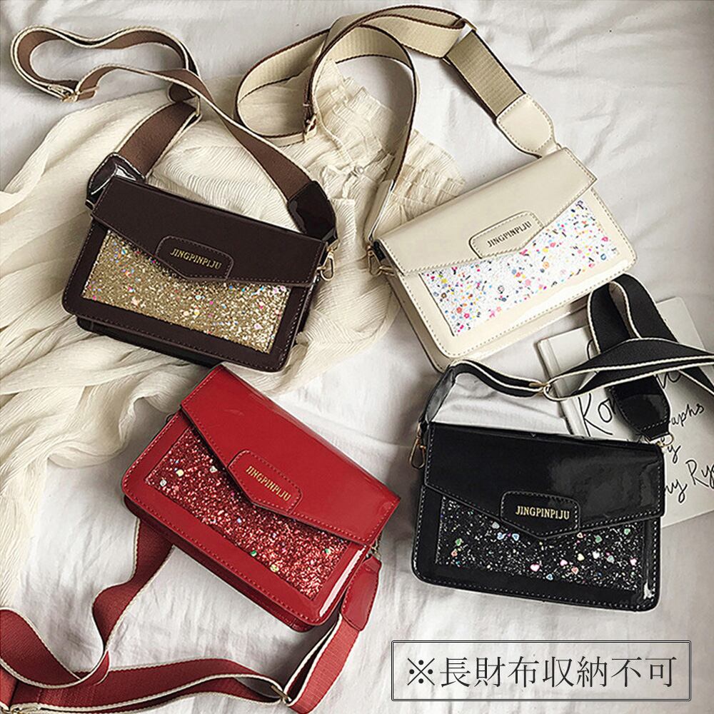 エナメルバッグ レディース ラメ スクエアバッグ ショルダーバッグ 斜めがけ