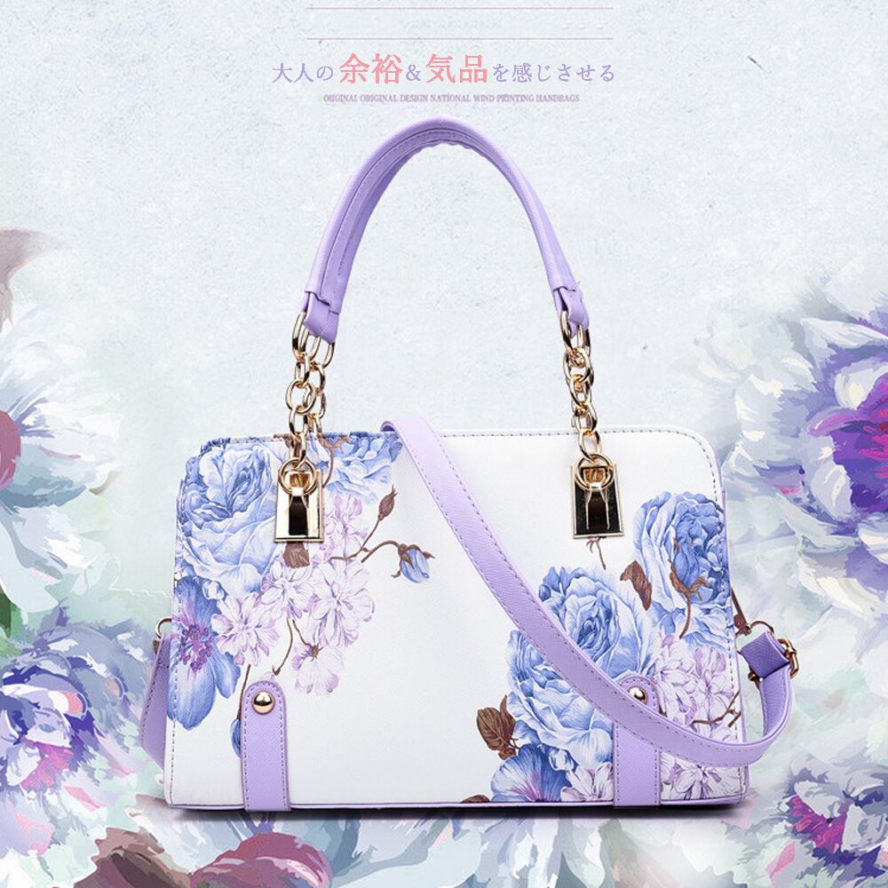 花柄 プリント トートバッグ PU スクエアバッグ レディース