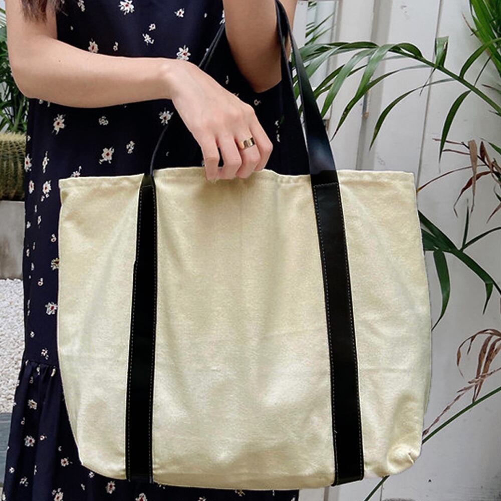 トートバッグ キャンバスバッグ レディース 持ち手レザー 大容量 肩掛けバッグ
