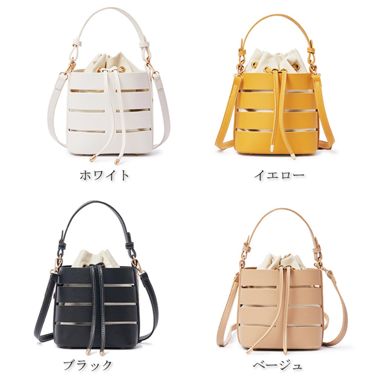バケツ型 トートバッグ 透かし 巾着 レディース PUショルダーバッグ