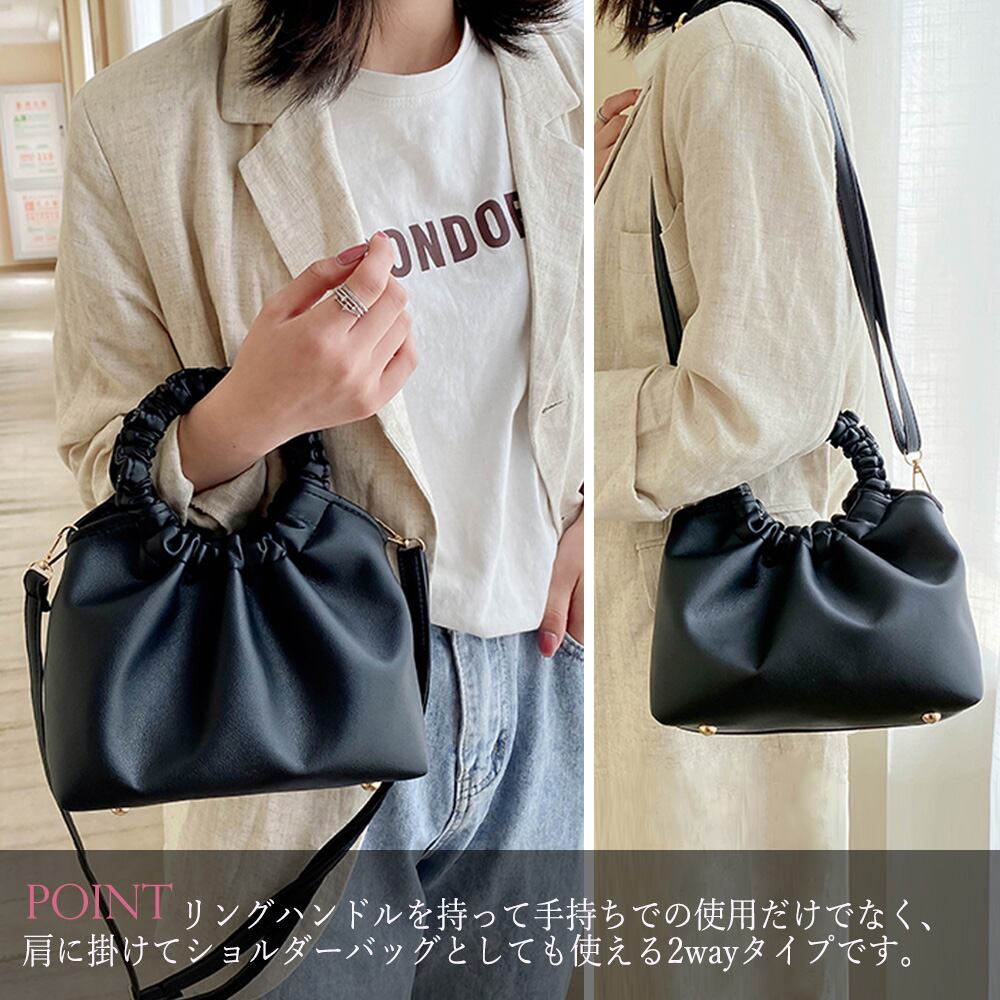 ギャザーバッグ レディース ショルダーバッグ リングハンドル 2way