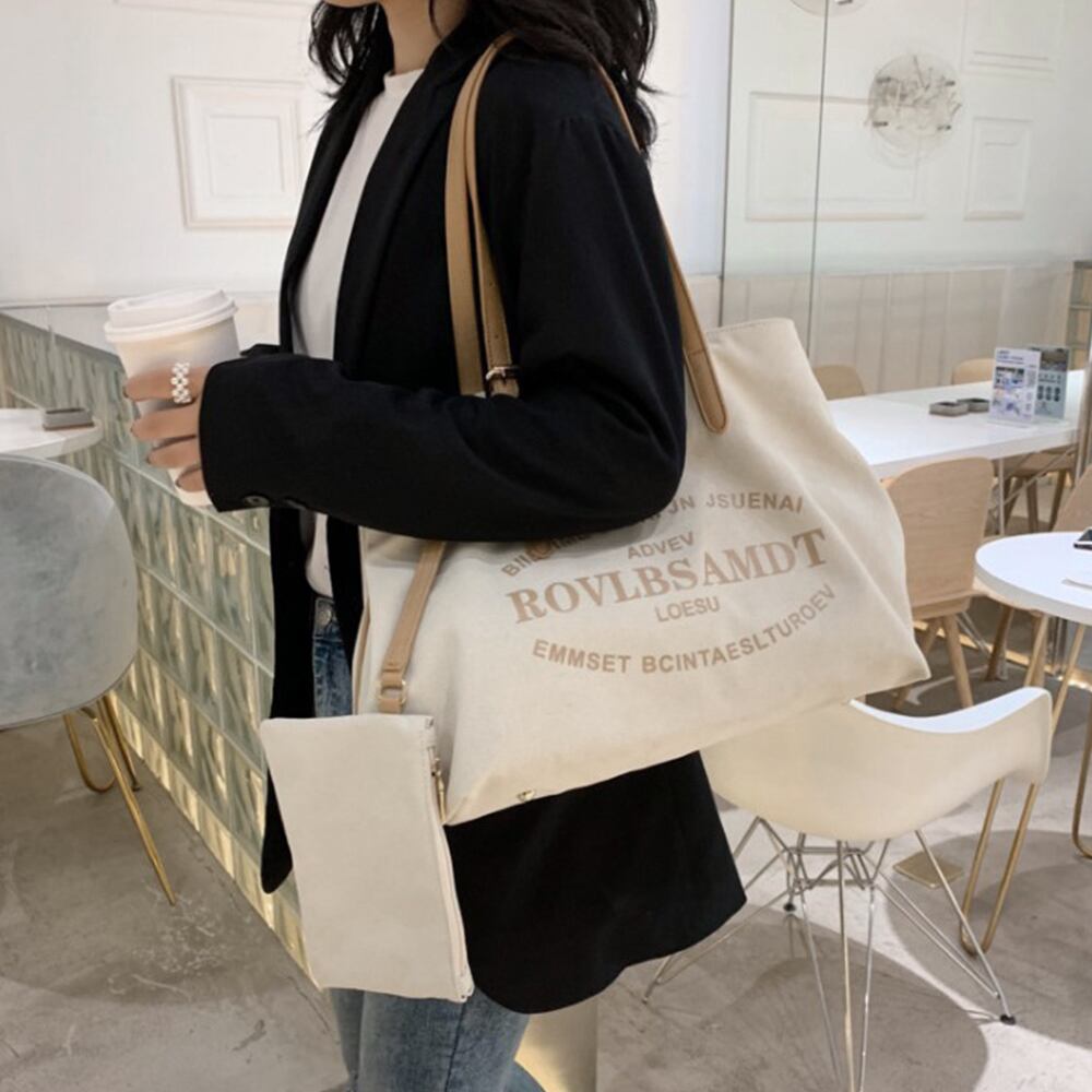 キャンバスバッグ レディース ポーチ付き トートバック 大きめ 肩掛け