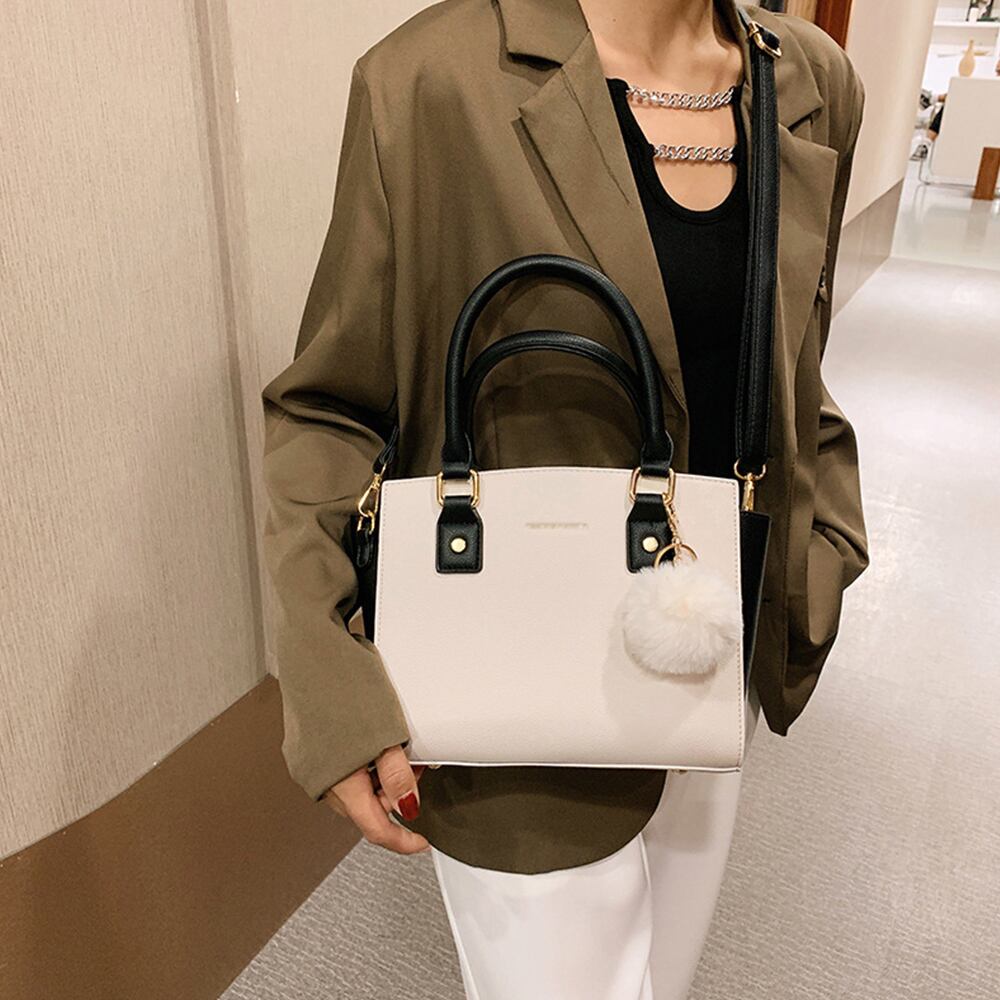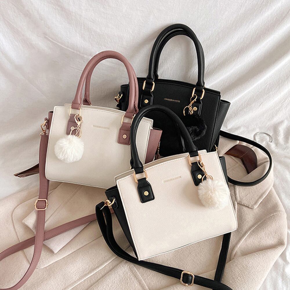 斜めがけバッグ ファーチャーム付き ミニハンドバッグ オフィス トートバッグ