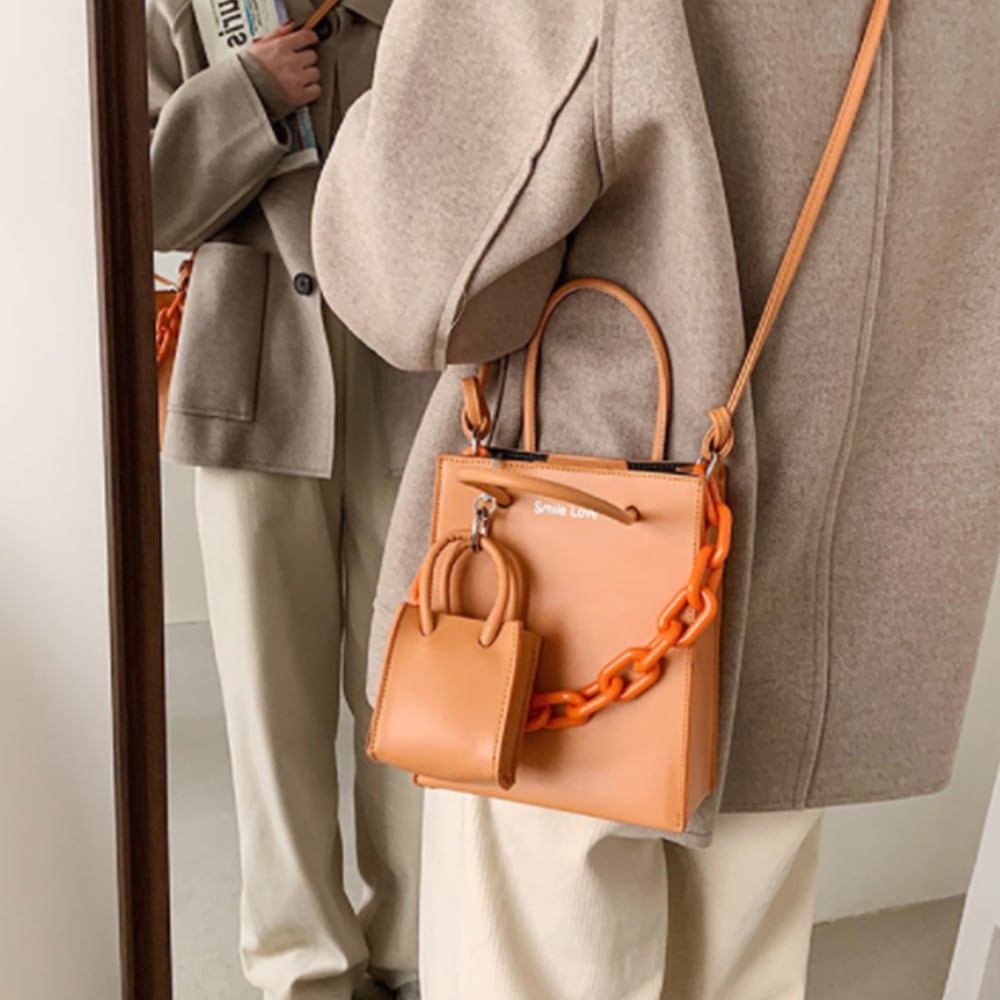 韓国 おしゃれ ハンドバッグ プラスチックチェーン 2wayバッグ PU かばん 縦型 スクエアカバン 肩掛け鞄合皮 縦型 手提げ 大人可愛い チェーンバッグ韓国