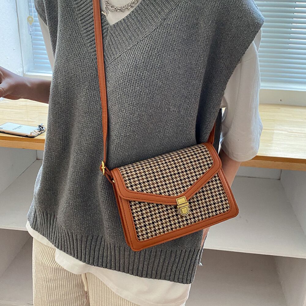 シンプルな千鳥格子柄が上品なスクエアミニショルダーバッグです。