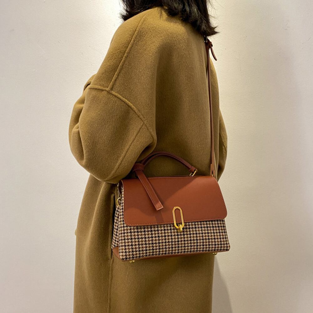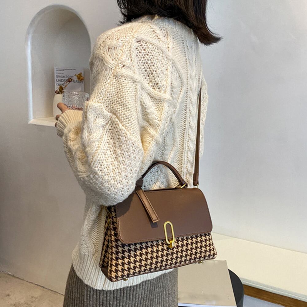 千鳥柄バック 韓国 手提げ 合皮カバン フラップバッグ通勤