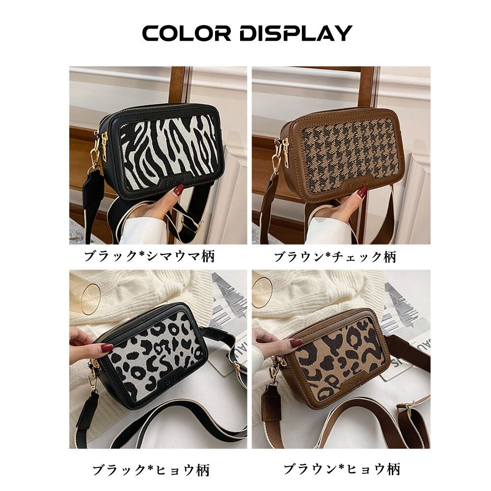 ヒョウ柄ポシェット ミニバッグ 千鳥柄 ゼブラ柄サブバッグ