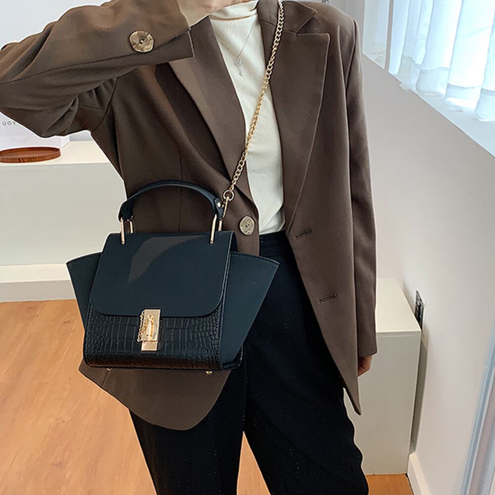 上品なヌバック調合皮とフェイクレザーを組み合わせたリュスクなデザインのミニショルダーバッグ