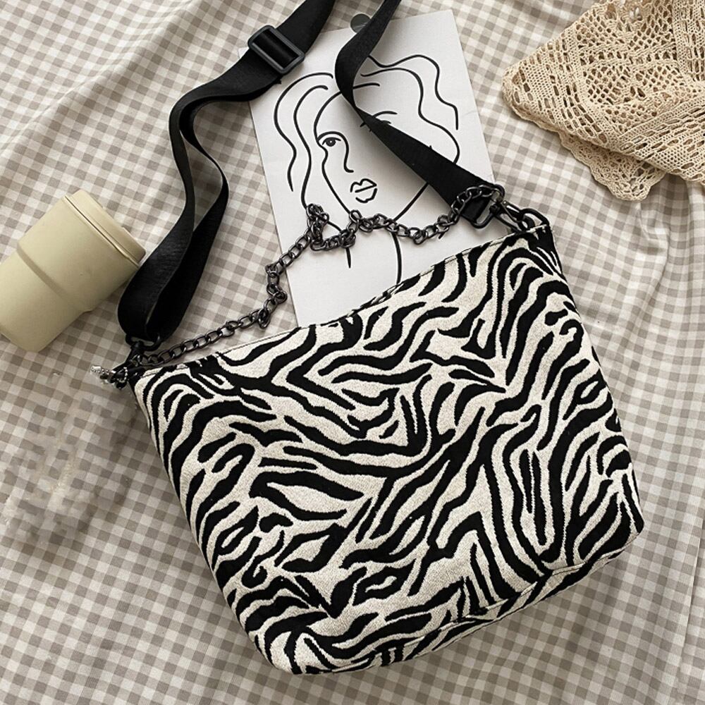 チェーンがアクセントになった可愛いゼブラ柄ショルダーバッグ