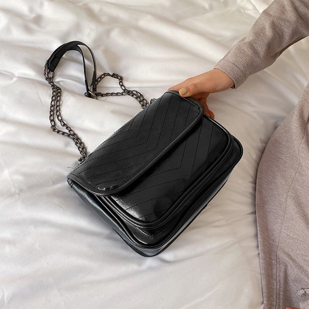 フェイクレザーで仕上げたレトロ風チェーンショルダーバッグ