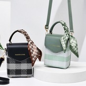 レディース チェック柄 PUレザー コンパクトバッグ 配色鞄 斜め掛け ミニバッグ おしゃれ 小さい 手提げバッグ 6色