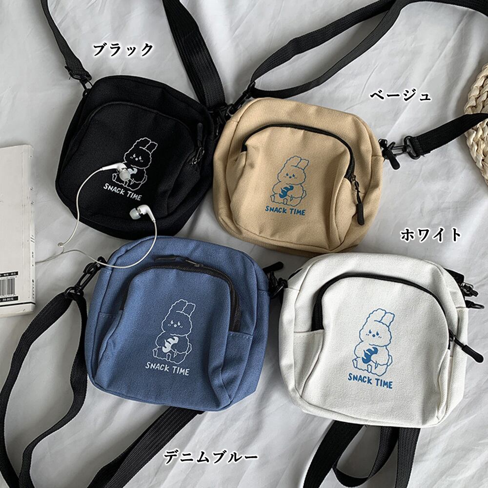 ウサギキャラクターのロゴは、可愛らしいミニショルダーバッグ