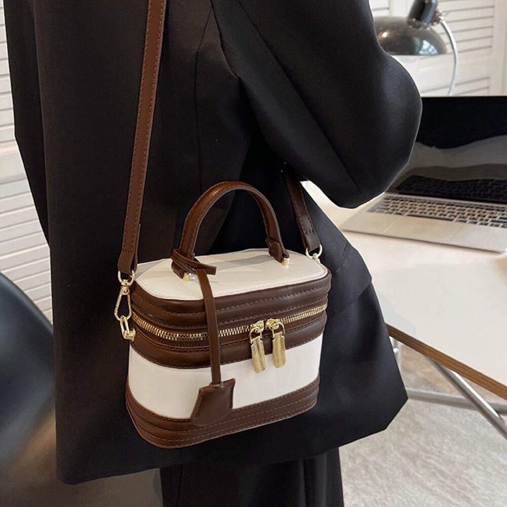 レトロ ミニショルダー 大人可愛いハンドバッグ 小さめ手提げバッグ 2WAY ファスナー バケツバッグ PUレザーかばん