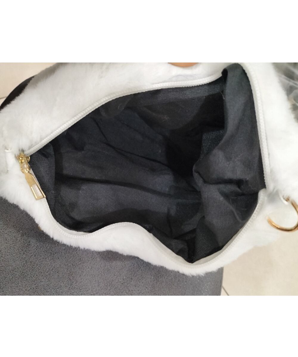 ふわふわ柔らかい手触りが気持ちいい、上質なエコファーにフェイクレザーショルダーを加えた異素材mix仕様の新作肩掛けバッグ