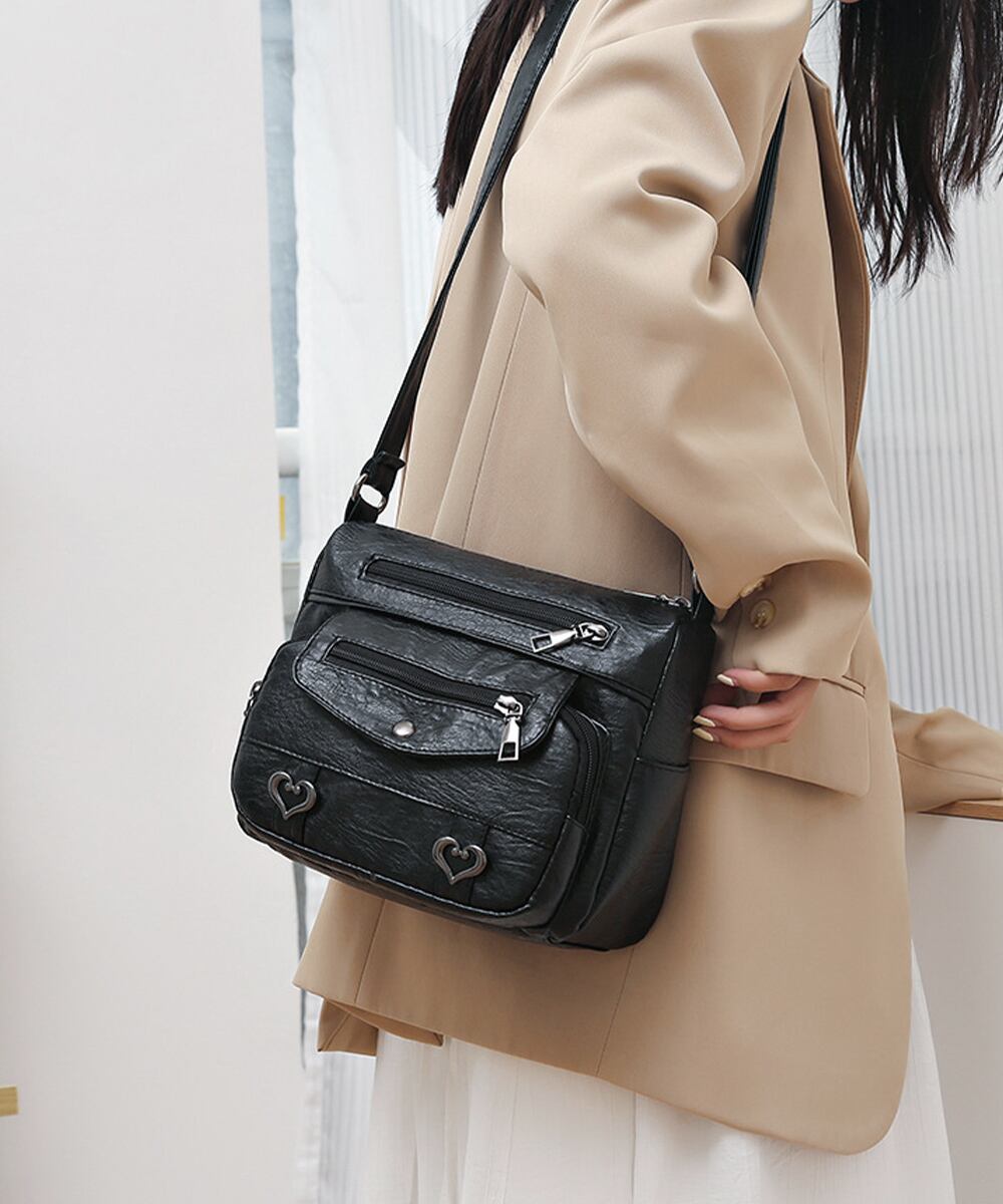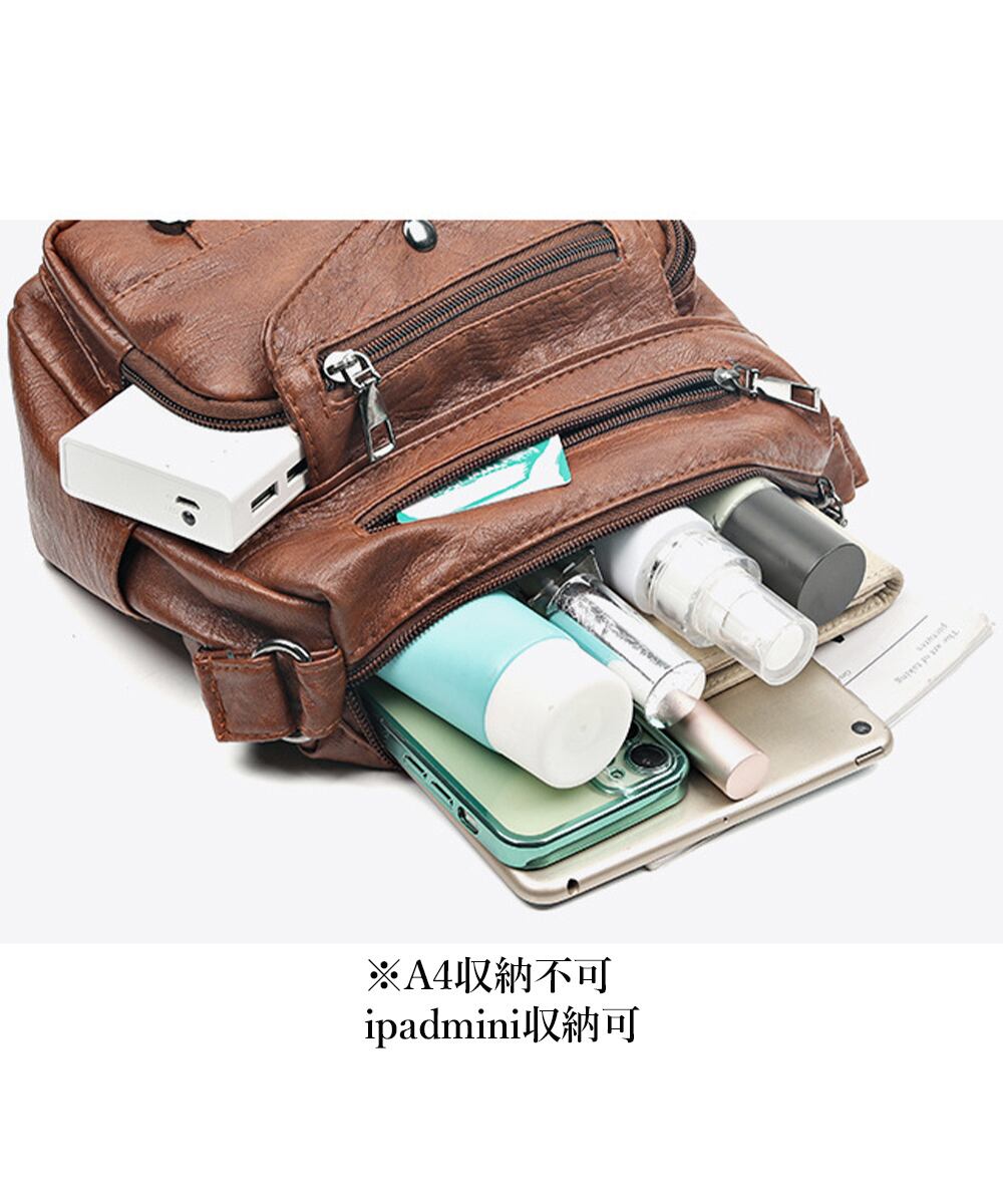 大容量マルチポケット クロスボディバッグ PUメッセージバッグ レトロかばん 小さめ肩掛けバッグ カジュアルカバン合皮