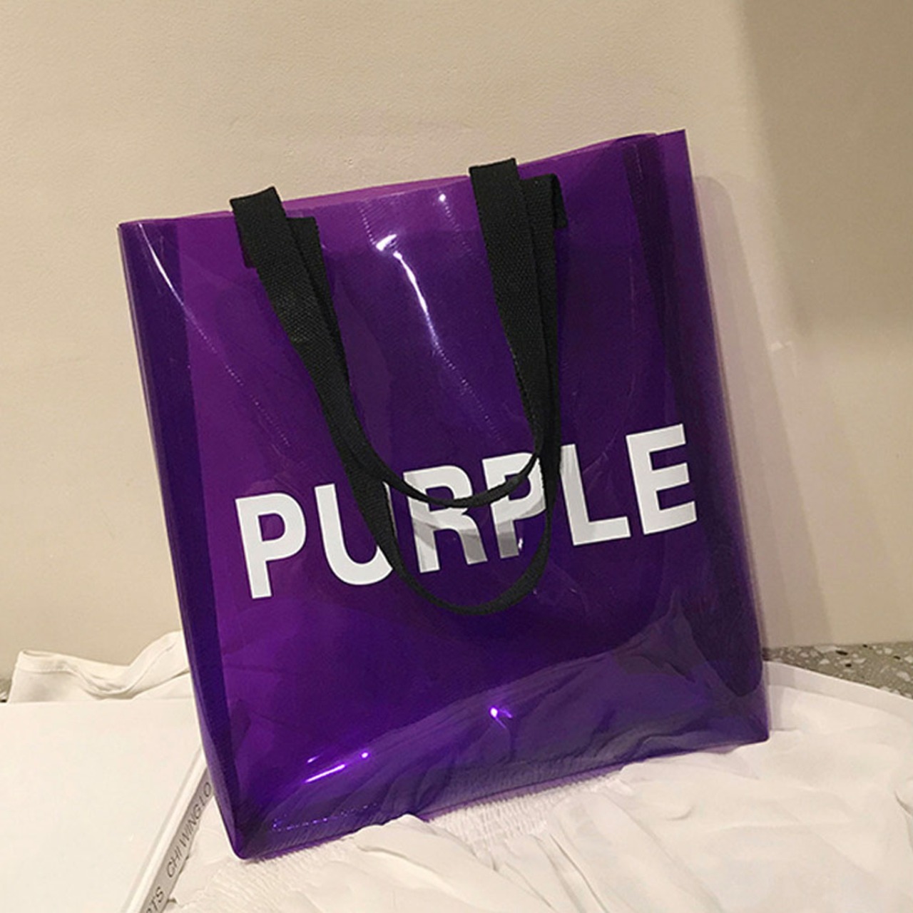 各色に合った英字ロゴがおしゃれで可愛い大容量サイズのビニールバッグ