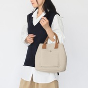 ブラック、ベージュ、グレージュ、チャコールグレーの4色展開で、 デザイン性と実用性を兼ね備えたハンドバッグ