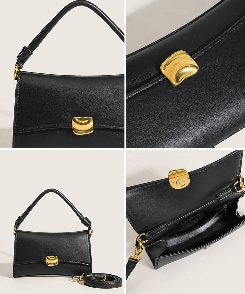 フロントに施された金具がリッチな雰囲気を演出するバッグです。