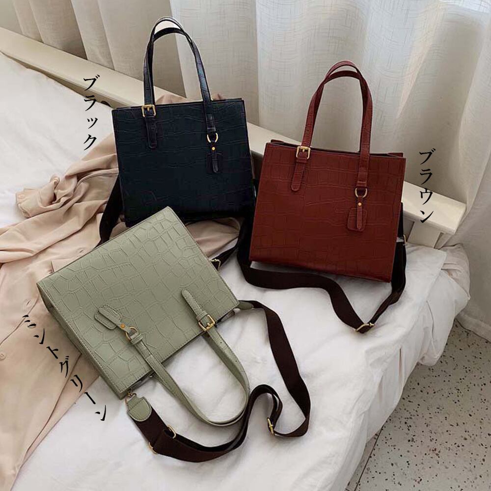 圧倒的なオシャレ感を演出してくれるクロコ型押し2wayトートバッグ