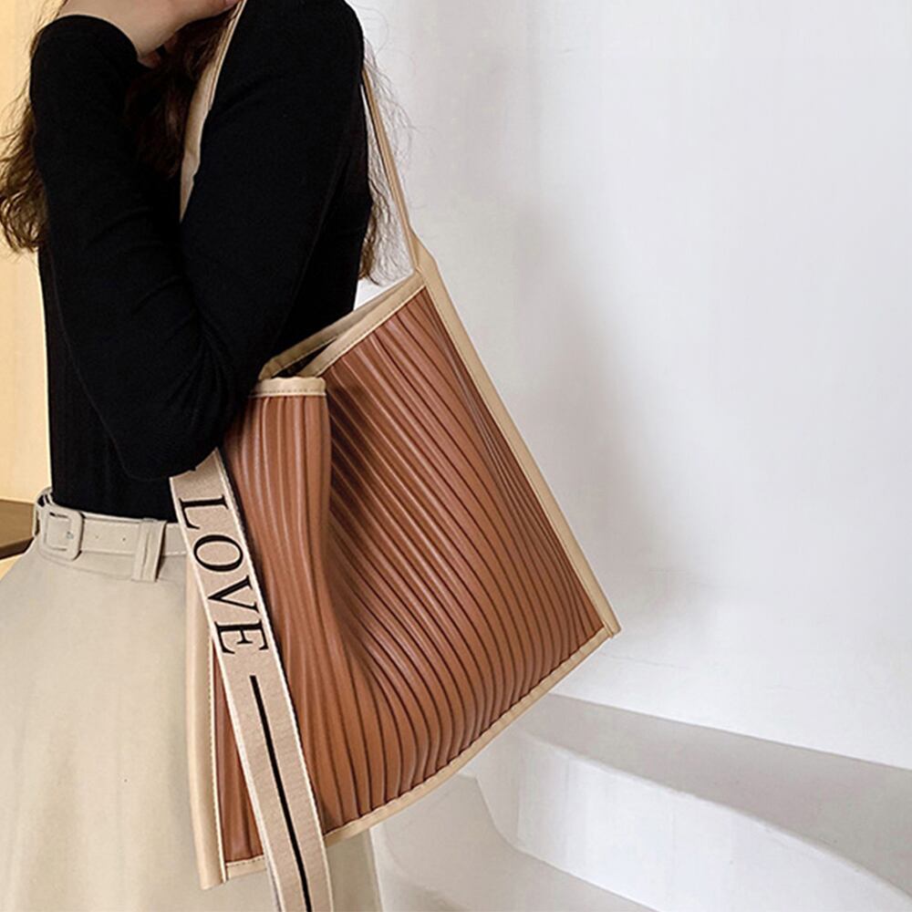 いつものコーデに合わせるだけで、さりげなくトレンド感を演出してくれプリーツトートバッグ