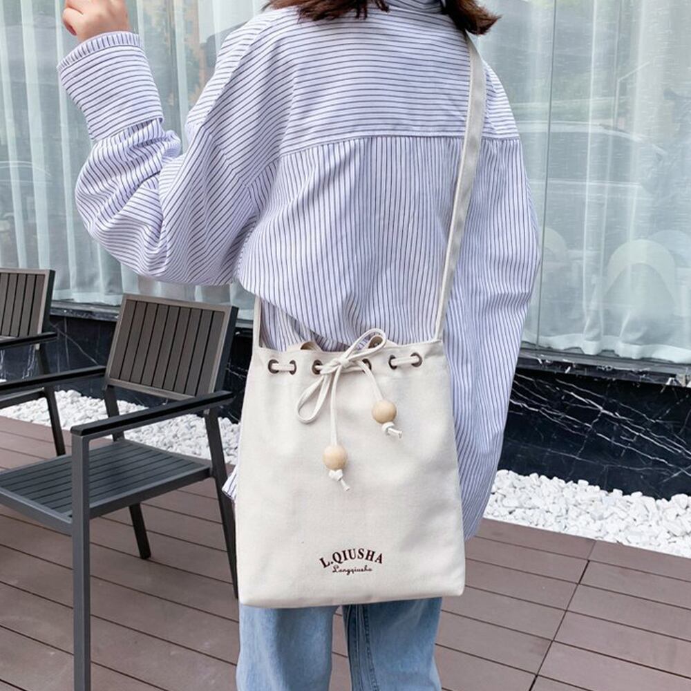 キュッと開口部を絞る巾着仕様が愛らしいキャンバスバッグです