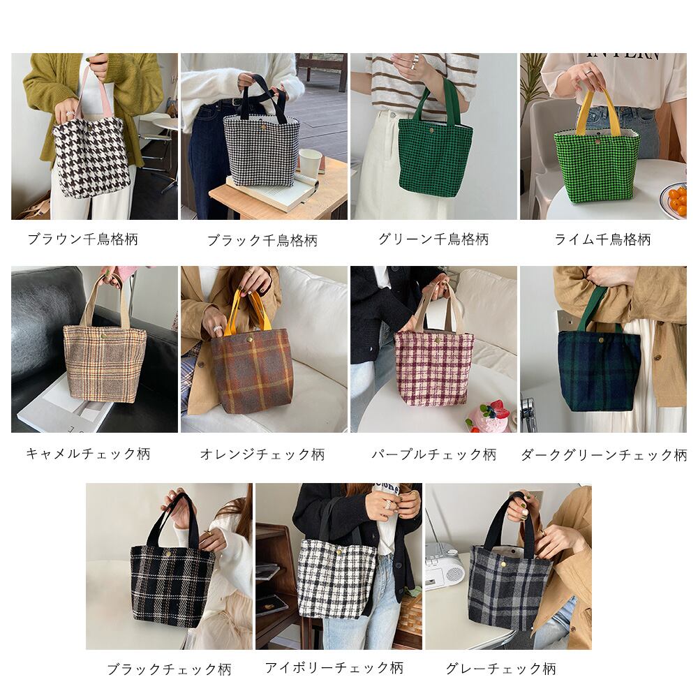 韓国 ハンドバッグ サブバッグ チェック柄 千鳥格柄 可愛い オシャレ シンプル 手提げ 収納バッグ お散歩バッグ 人気