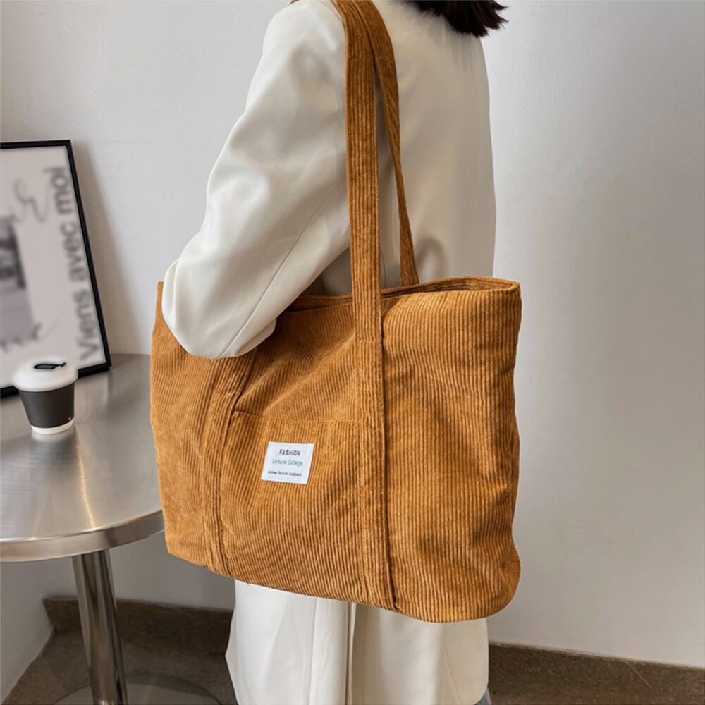 温かみのある秋冬らしいコーデュロイ素材のトートバッグ
