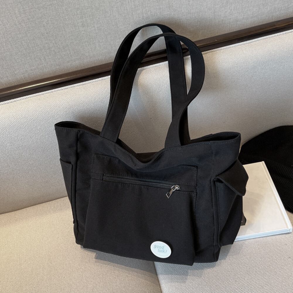 大容量 サイドポケット付き マザーズバッグ シンプル カジュアルバッグ A4サイズ 通学通勤かばん 無地 ハンドバッグ黒