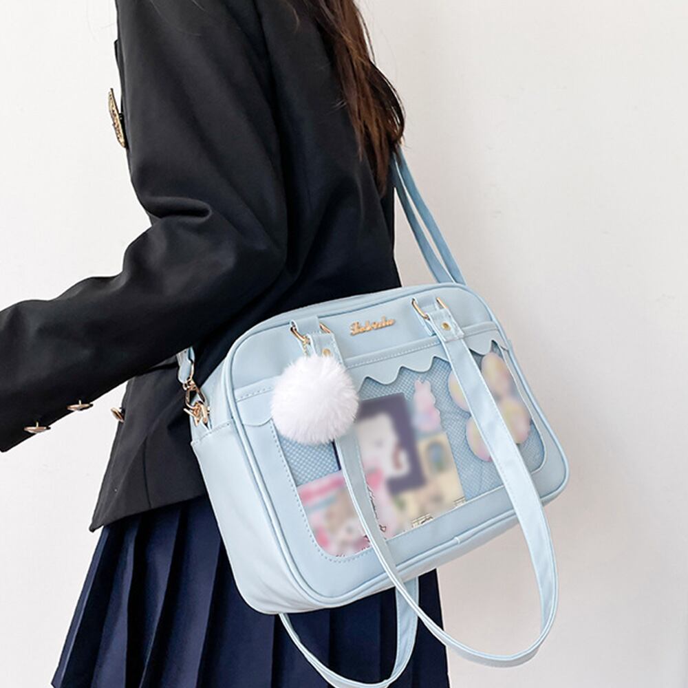 可愛い 2WAY スクールBAG 肩掛け PUレザー 斜め掛けかばん クリア 学生カバン トートバッグ通学バッグA4韓国