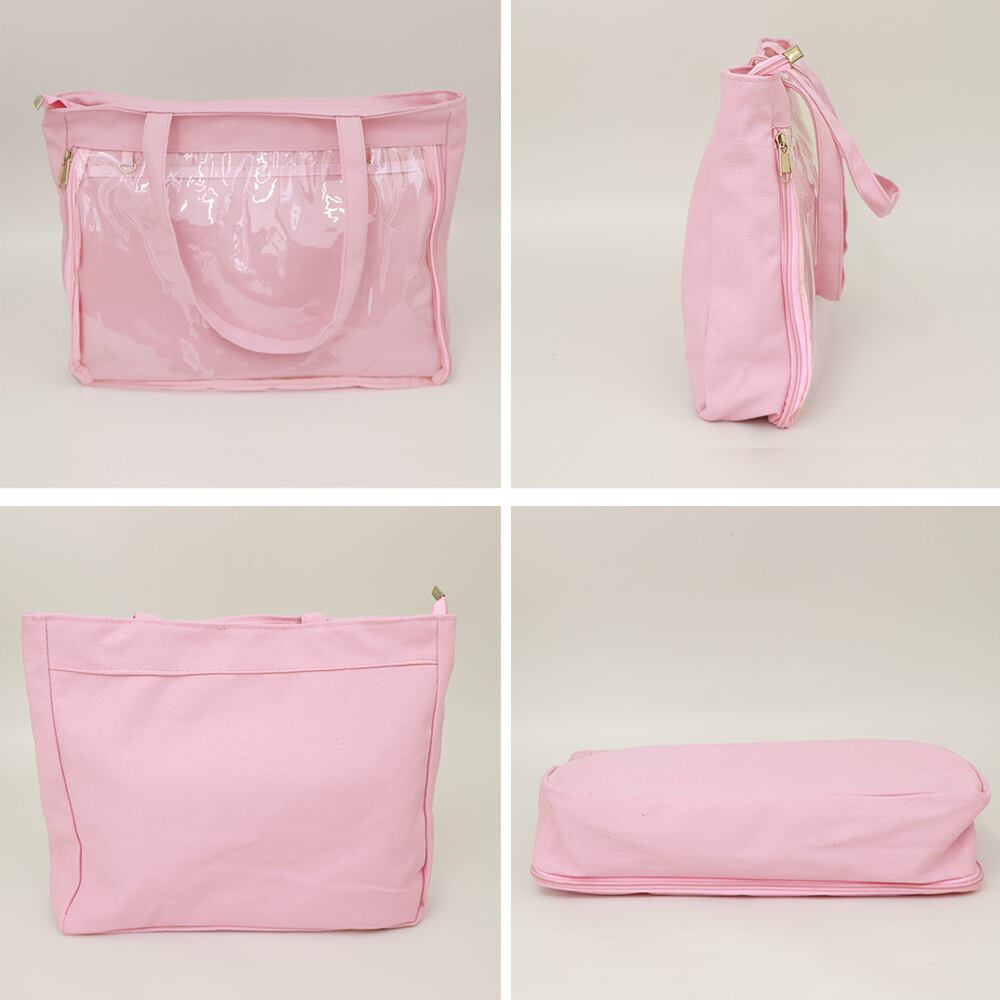 キャンバスバッグ クリアポケット 大容量