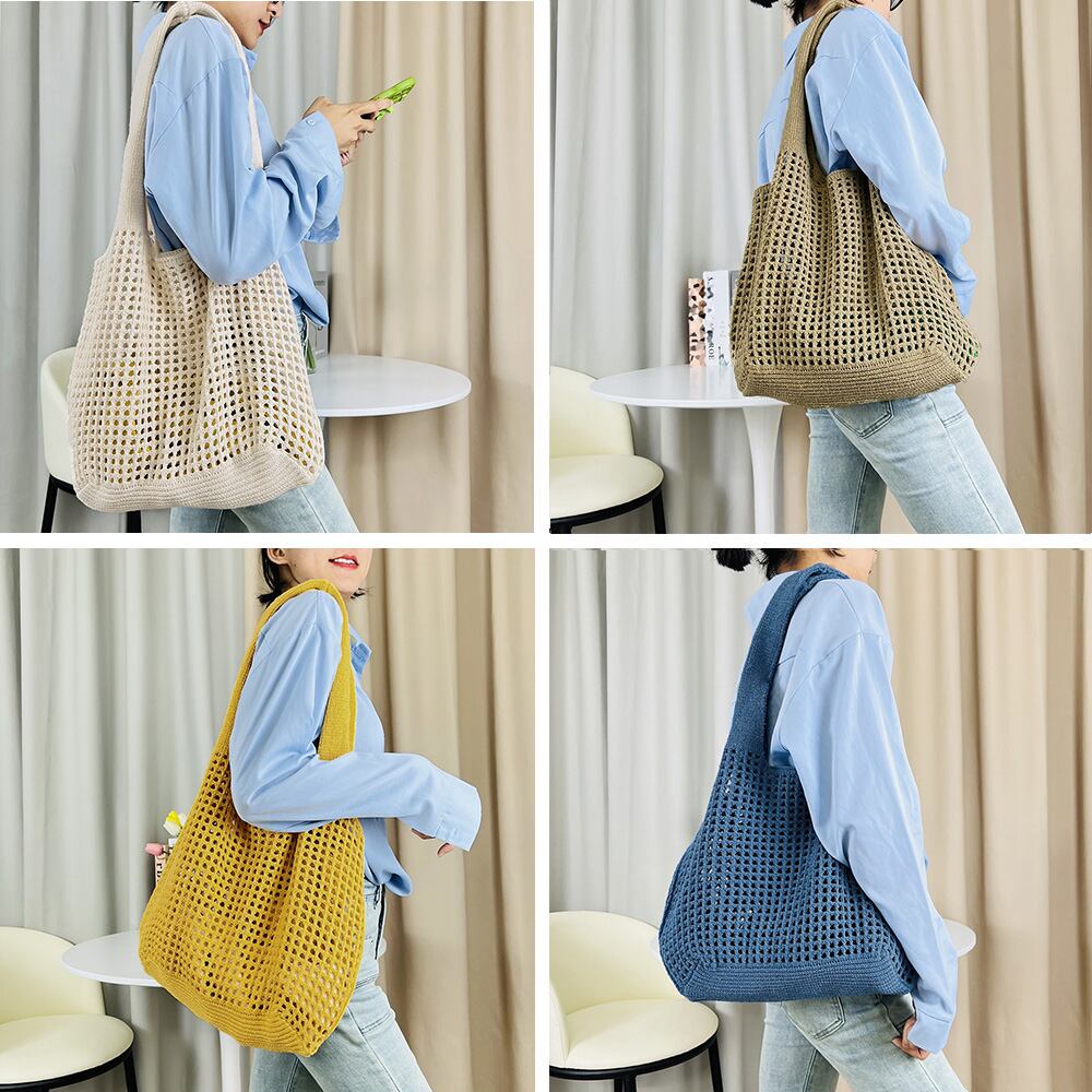 レディース クロシェ編み 肩掛けバッグ a4大容量ビーチバッグ 無地 シンプル ナチュラル 可愛い9色展開 韓国軽量