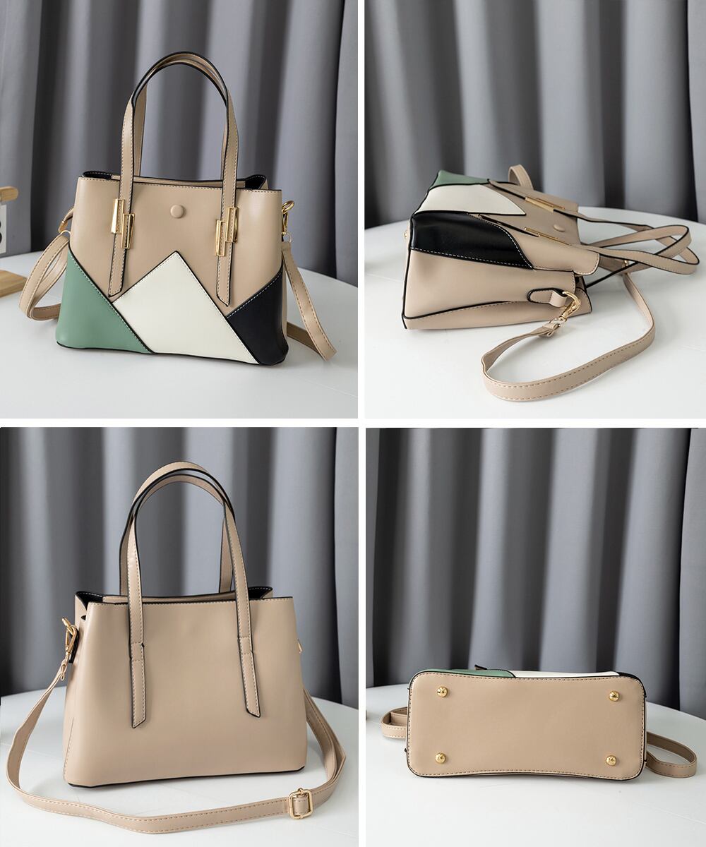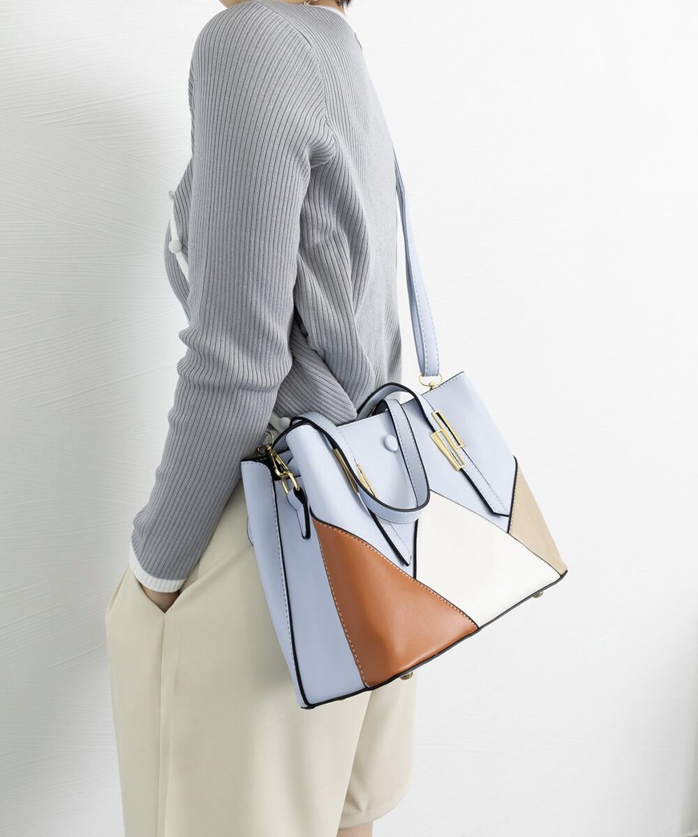 レディース バイカラーショルダーバッグ 大きめ PUレザー鞄 マルチカラーオフィスカジュアル 肩掛けバッグ 卒園式入学式
