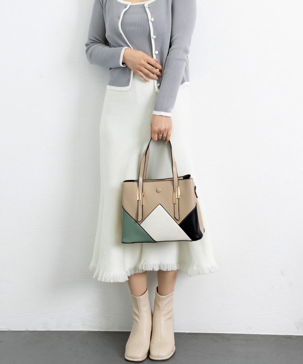 シンプルなフォルムに、切り替えデザインがおしゃれなアクセントのトートバッグ