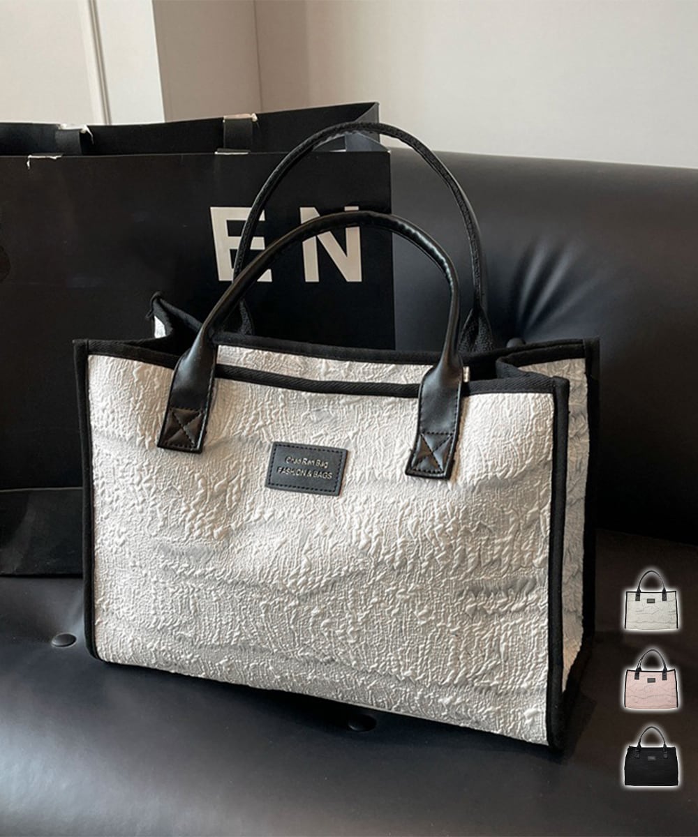 ジャガード スクエアトート おしゃれ A4大容量かばん 通勤通学 オフィスカジュアル鞄韓国風 手提げバッグ 肩掛けカバン