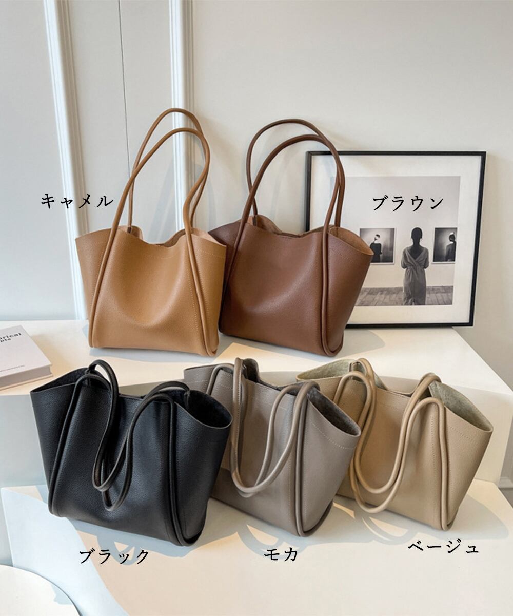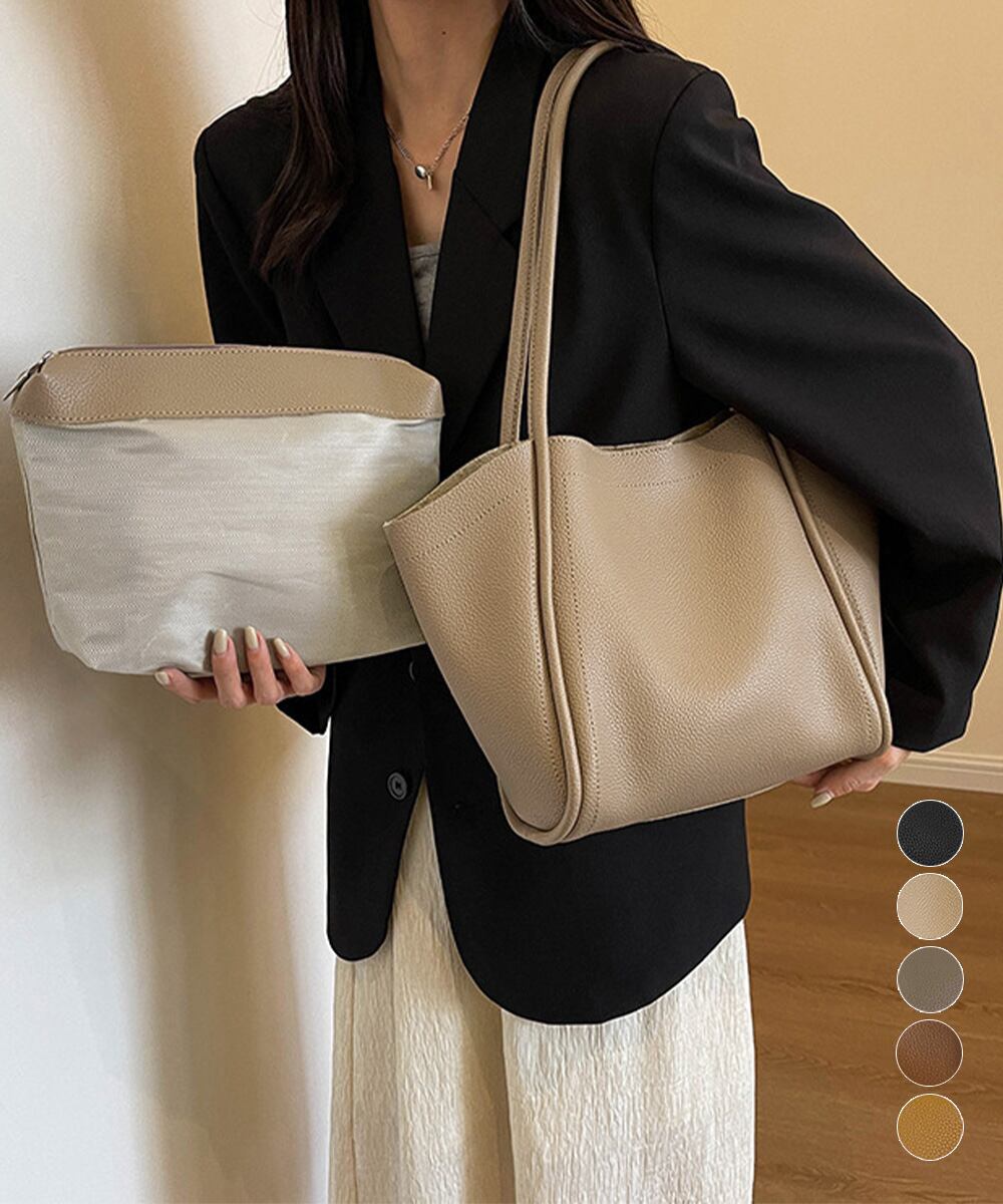 韓国風 エコレザーバッグ2点セット 大容量カバン シンプル 通学通勤かばん 無地 ハンドバッグ 大人上品バッグインバッグ